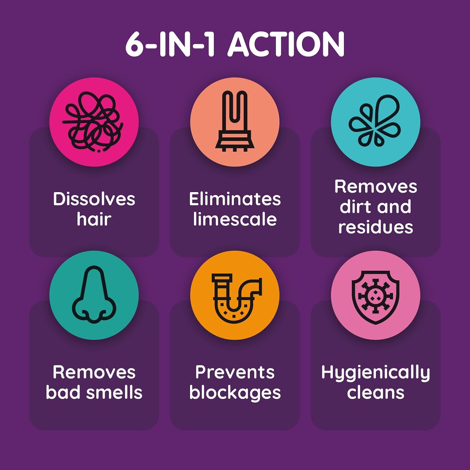 - DEEP CLEANING 6-IN-1 FORMULA - 6-in-1 washing machine cleaner descaler with HAIR DISSOLVING TECHNOLOGY. A benefit that no other washing machine cleaners offer. Vamoosh Washer Machine Cleaner prevents blockages by dissolving human and pet hair