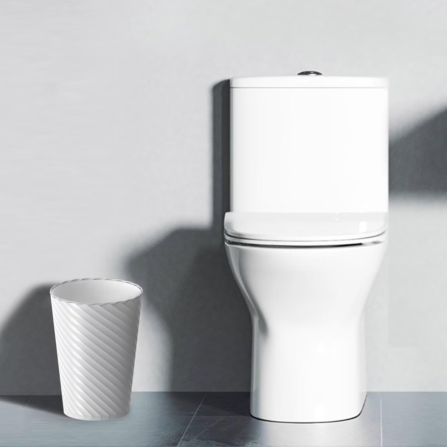 - 【Distinctive Threaded Look】Stand out with our trash can featuring a unique threaded design, adding a modern touch to any space. Designed for hassle-free maintenance, this trash can is simple to wipe down or rinse out, ensuring a hygienic and tidy environment with minimal effort.
