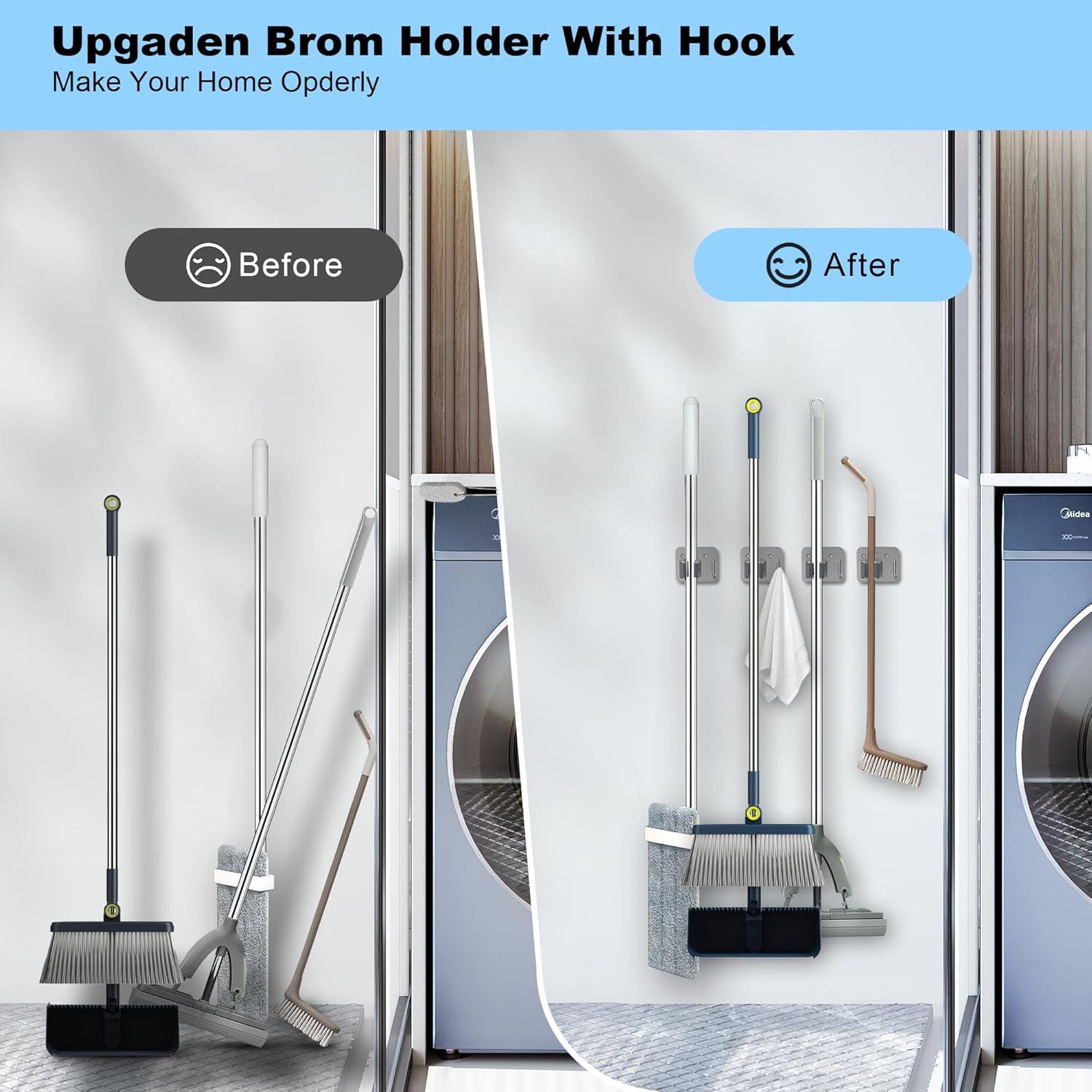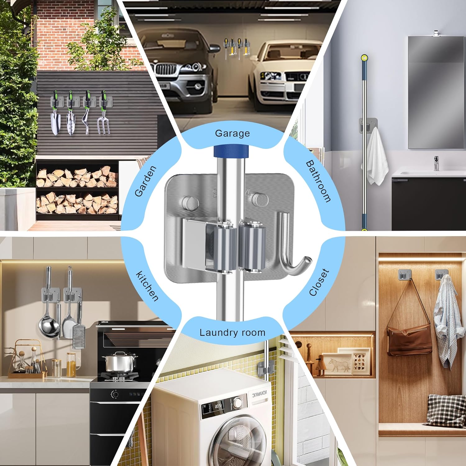 - Multi-Functional Organization: The heavy-duty design of the broom storage rack is not only suitable for storing various cleaning tools, but also suitable for organizing and storing tools in the garage, laundry room, kitchen, bathroom, closet, and garden