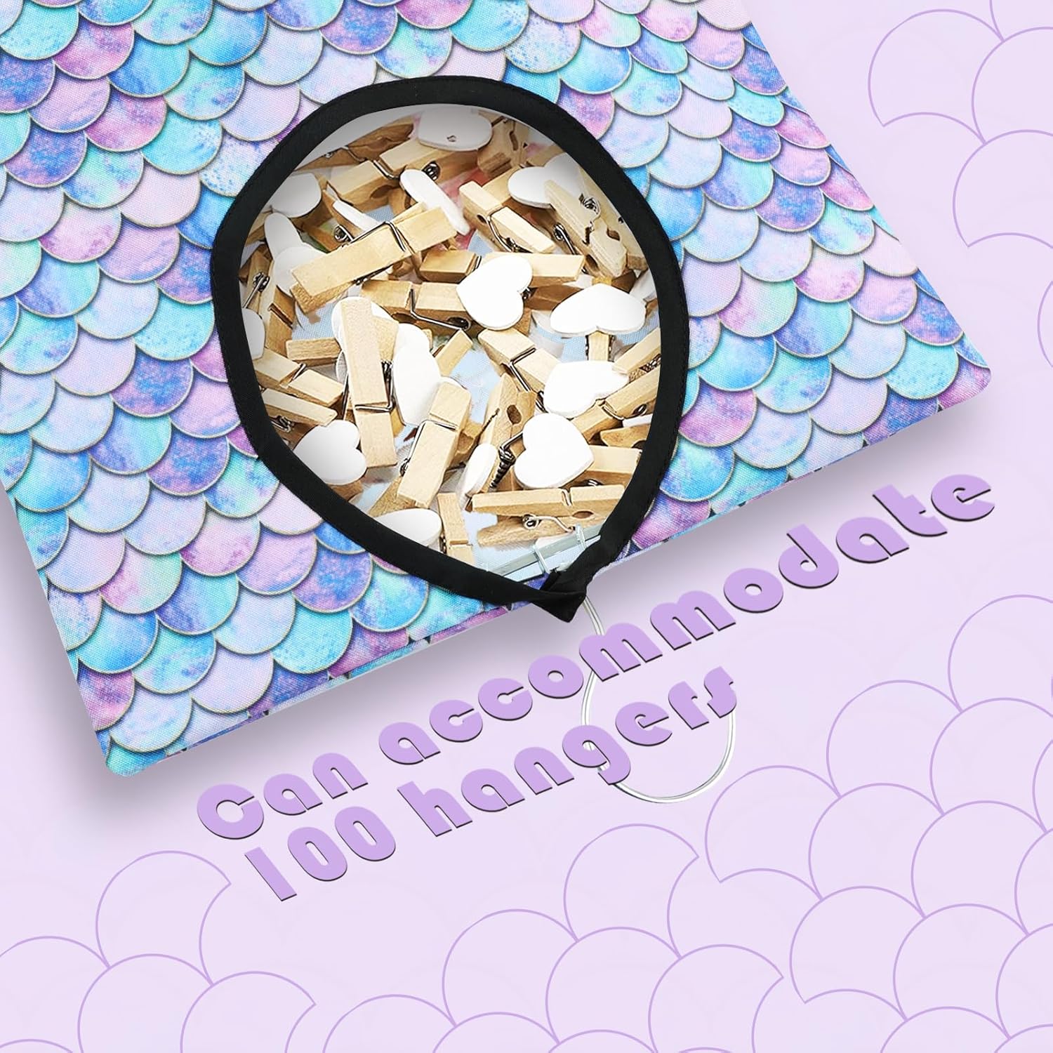 2 Pcs Summer Clothes Pin Bag Mermaids Clothespin Bag Holder Clothespin Holder 15 X 11 Inch Clothes Pin Hanging Bag Clothespin Bag for Clothesline Outdoor Outside Wardrobe and Laundry Room