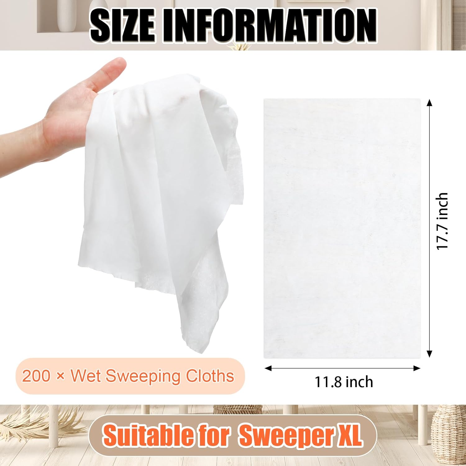 200 Counts Sweeper Wet Mopping Cloths 17.7 x 11.8'' X Large Wet Mop Pads Refills XL Disposable Floor Wipes Duster for Sweeping Scrubbing Cleaning Dry Wood Hardwood Tile