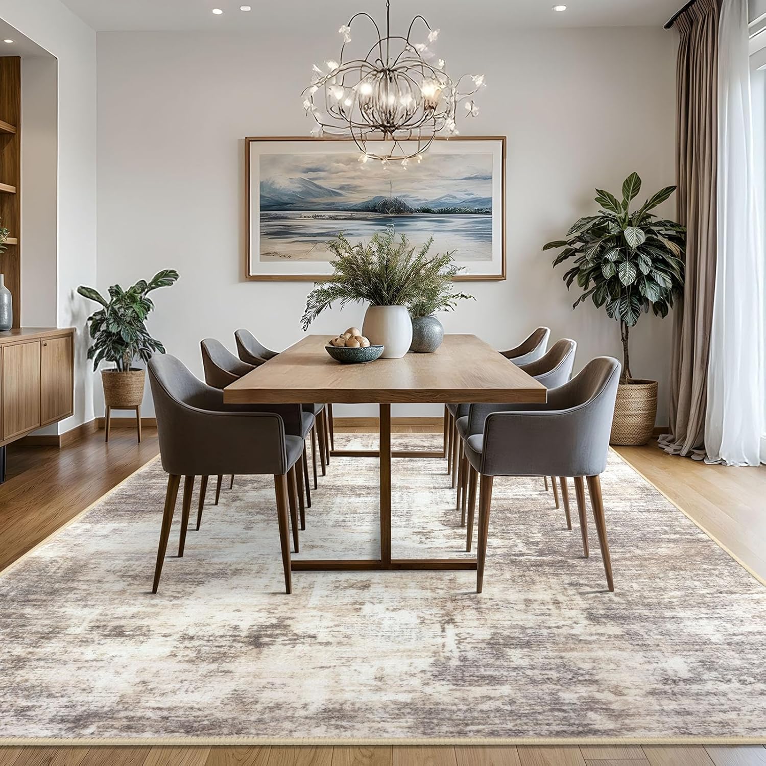 - Machine Washable: This dining room rug is machine washable for easy maintenance, keeping it fresh and vibrant without the need for manual cleaning. Noted: When vacuuming, use a low setting or a robotic vacuum to prevent shifting or bunching