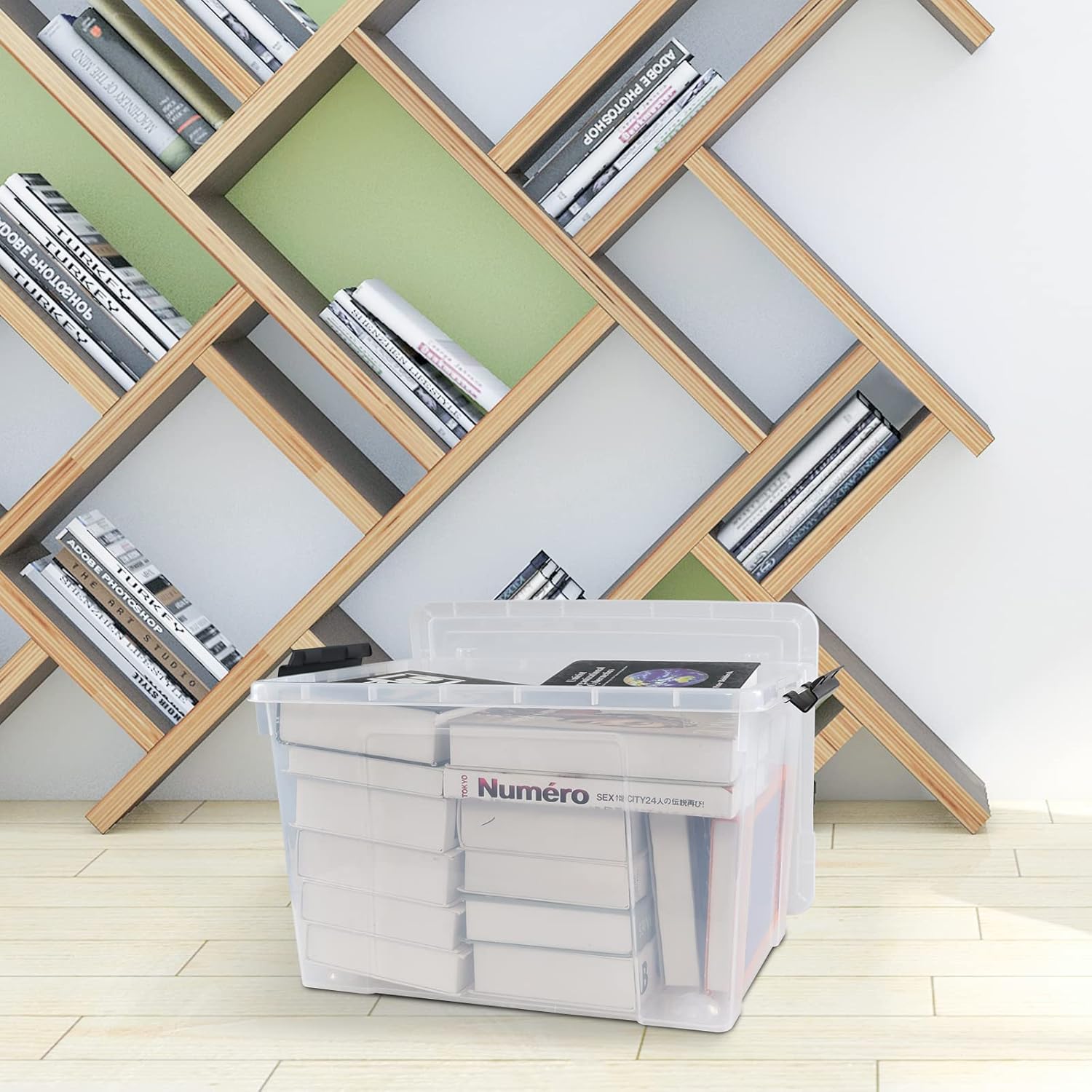 4 Pack Clear Storage Latch Bin with Lid, 34 L Plastic Wheeled Storage Box