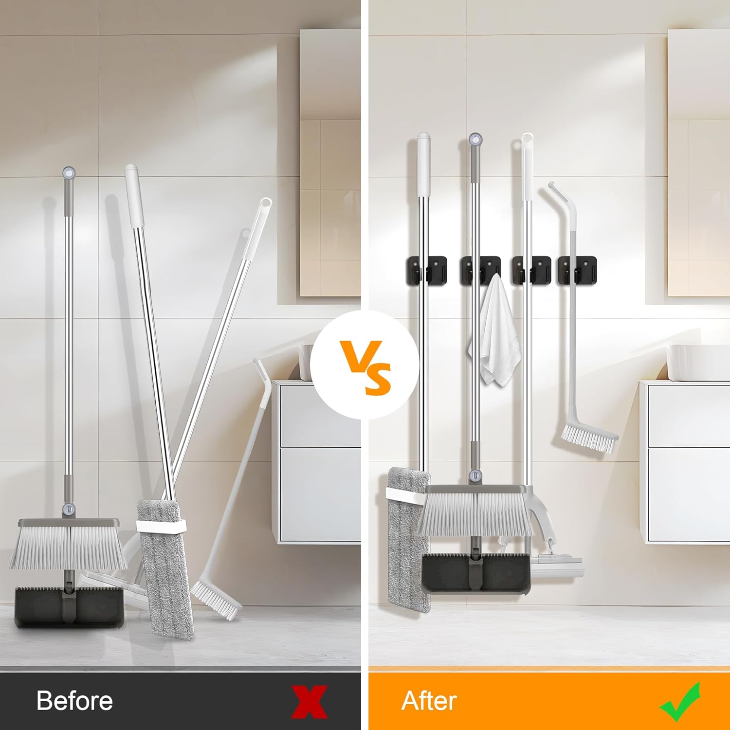 - Multi-Functional Organization: The heavy-duty design of the mop organizer wall mount is not only suitable for storing various cleaning tools, but also suitable for organizing and storing tools in the garage, laundry room, kitchen, bathroom, closet, and garden.
