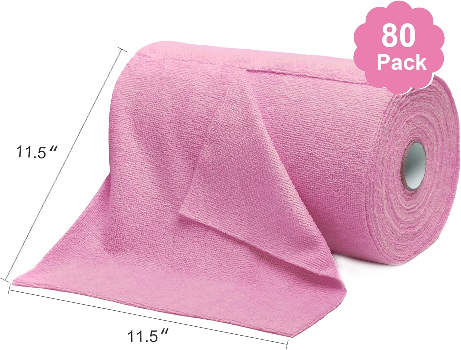 LIVOS Microfiber Cleaning Cloth Roll - 80 Pack, Reusable Paper Towels Pink Tear Away, Microfiber Towels for Cars, Super Absorbent Lint Free Cleaning Rags for House, Kitchen, Window-11.5"x11.5"