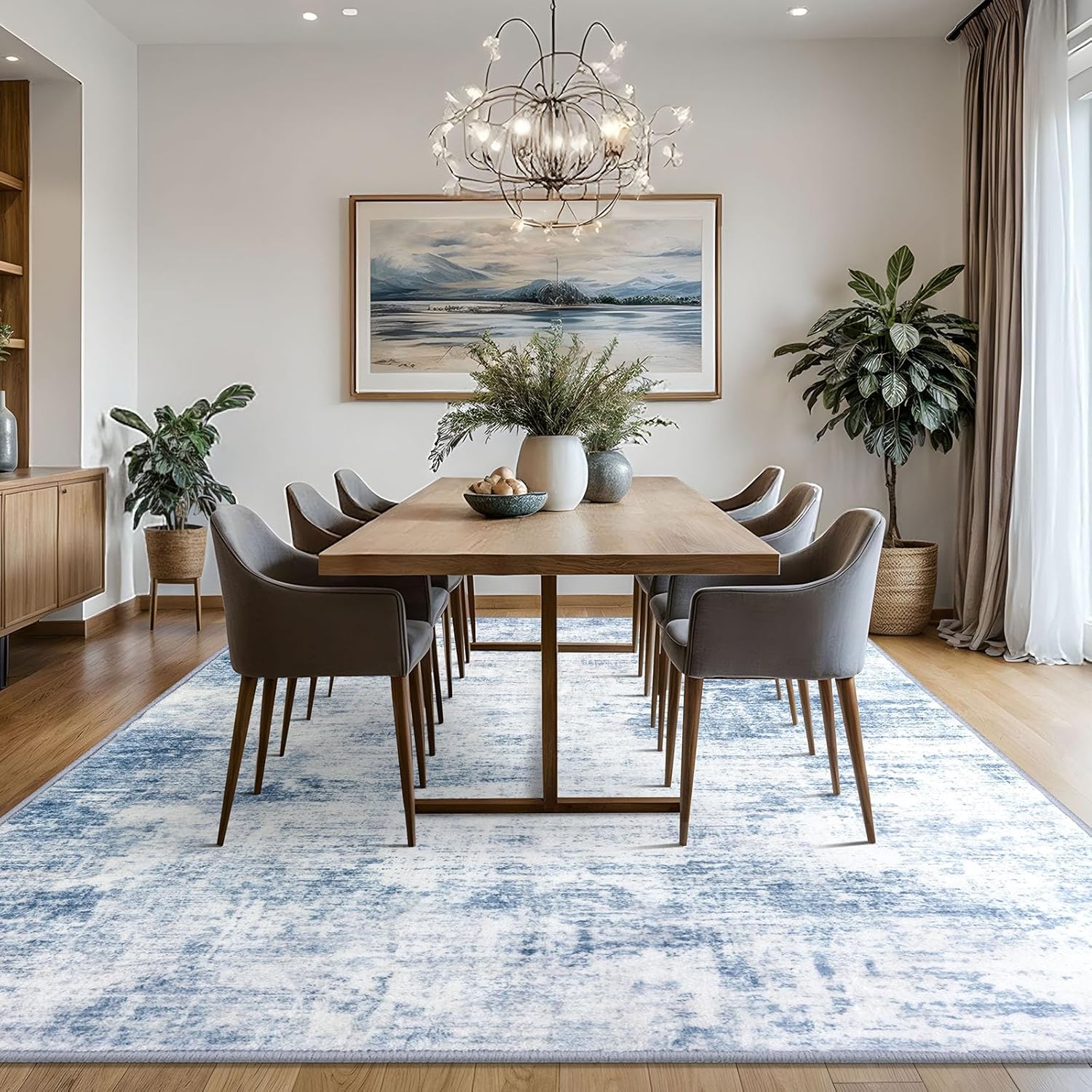 - Machine Washable: This dining room rug is machine washable for easy maintenance, keeping it fresh and vibrant without the need for manual cleaning. Noted: When vacuuming, use a low setting or a robotic vacuum to prevent shifting or bunching