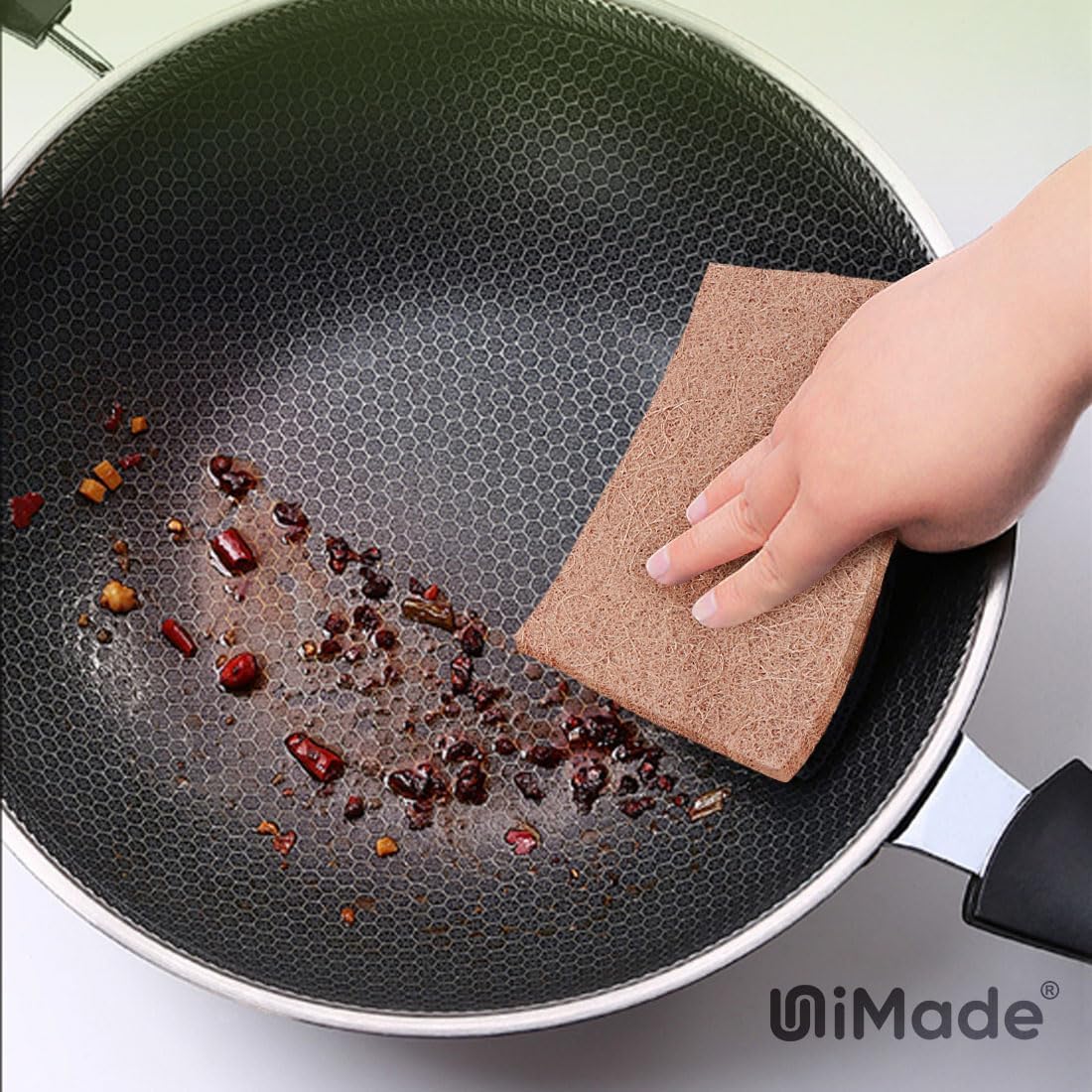 - Powerful Cleaning Ability: These scrubber pads feature a robust abrasive surface made from natural sisal fibers, which excels at removing stains and grime. They can easily clean your dishes, glasses, and non-stick pans without damaging the surface of these items, making them ideal for daily cleaning.