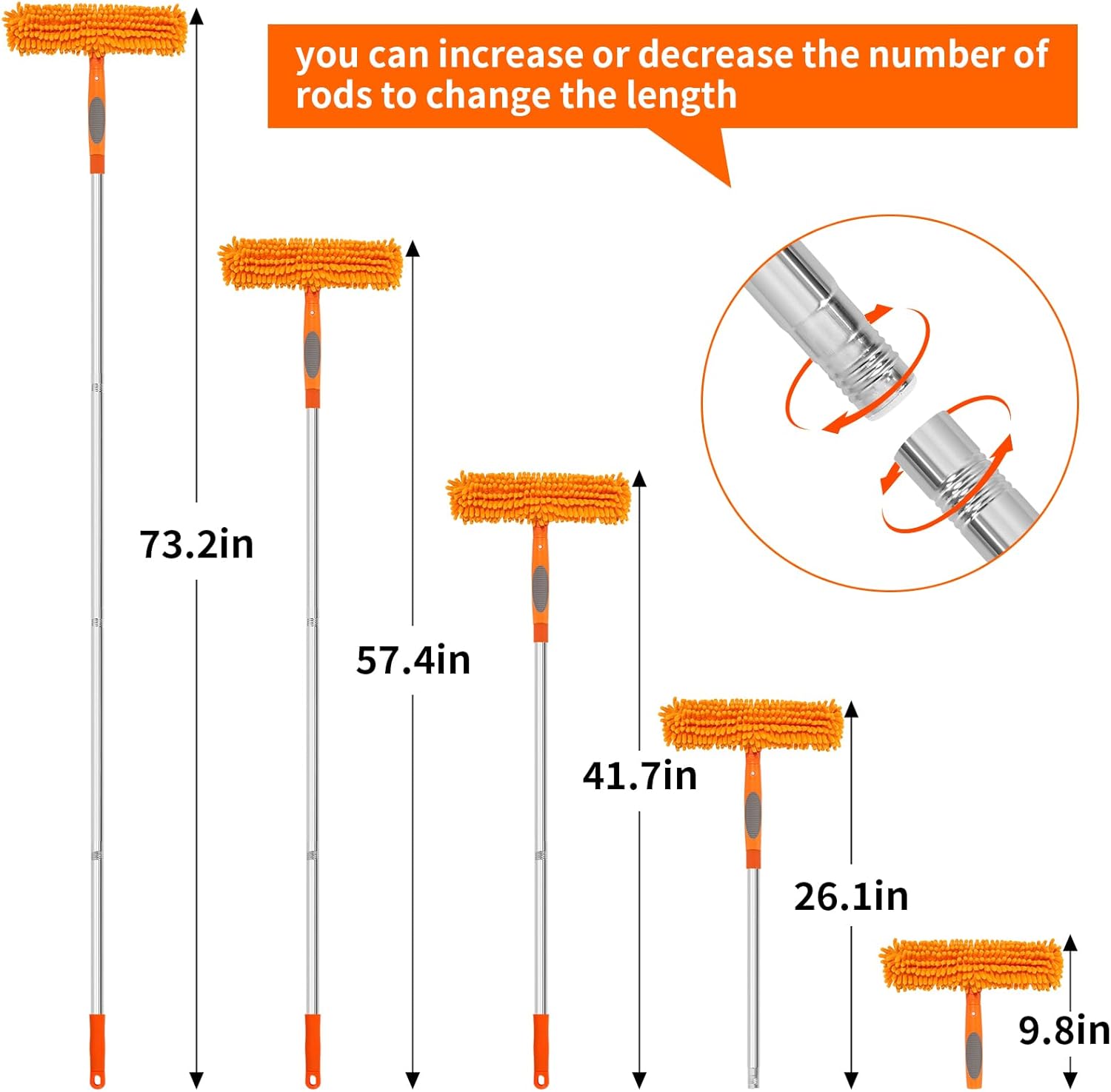 - THE PACKAGE INCLUDES:You will receive a squeegee blade, two chenille scrubbers, two microfibre scrubbers and four spliceable poles.The chenille scrubbers and microfiber scrubbers can be used again in place of each other after you use them for cleaning.