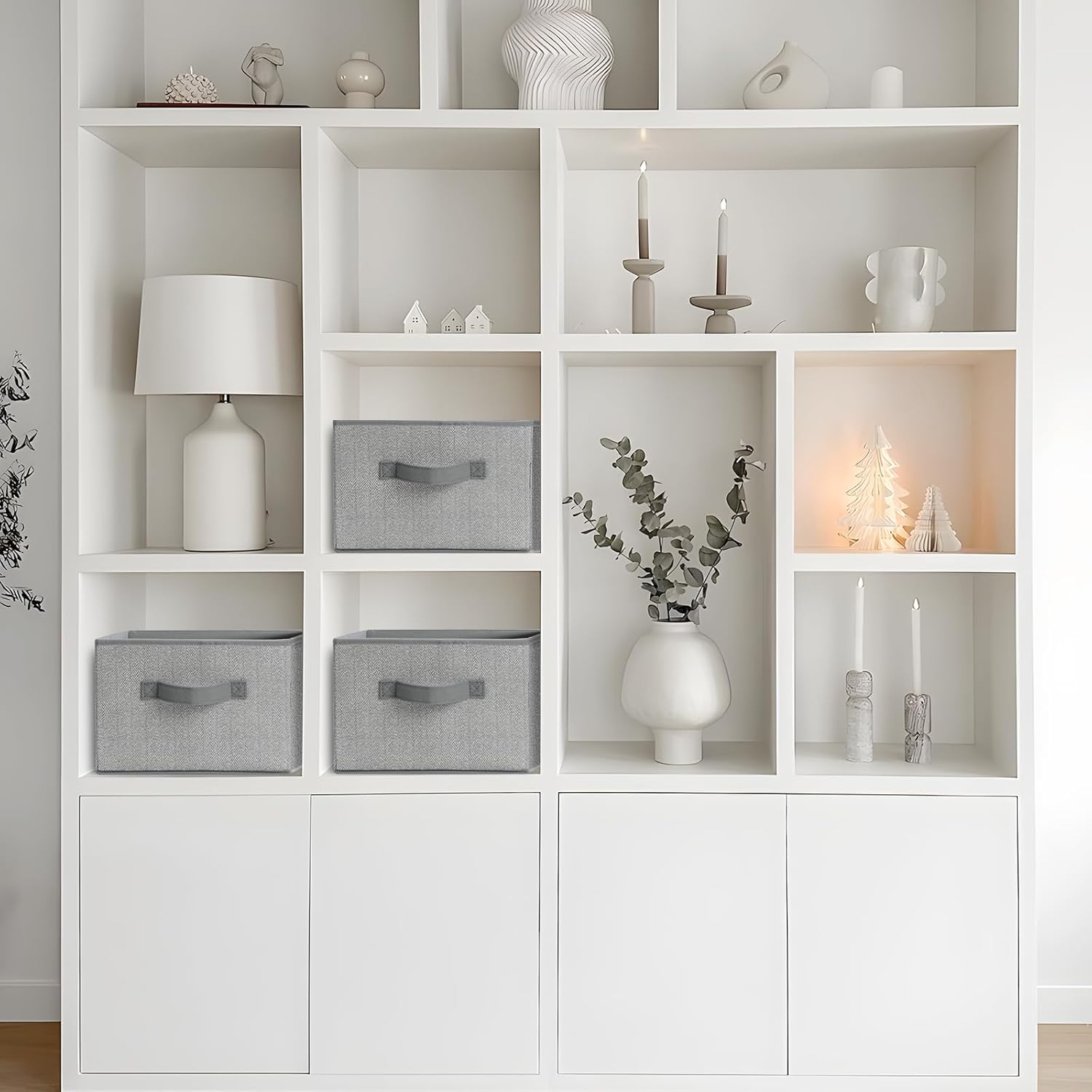 Storage Baskets, 11-Inch Woven Fabric Bins, Storage Cubes with Reinforced Handles, Organizer Bins for Closet Shelves, Foldable, for Toys, Clothes, Natural Beige (2PCS/Grey-11*11*7.8inch)