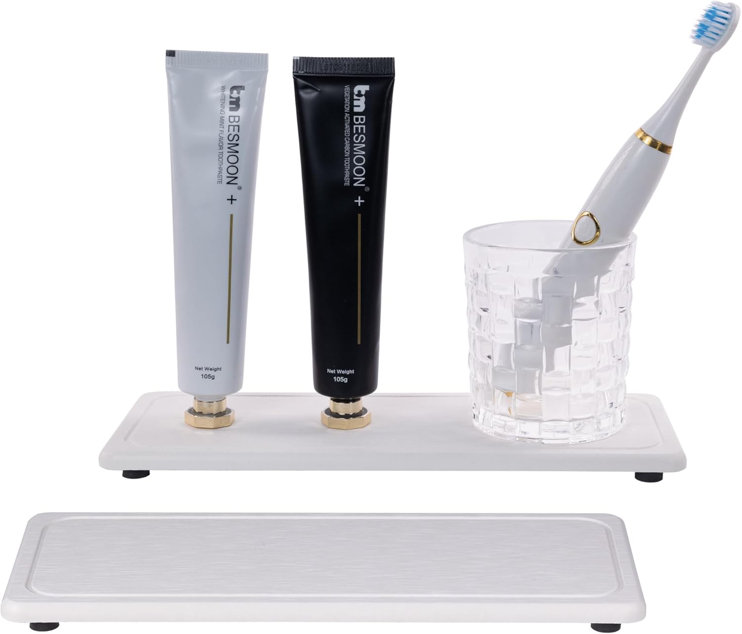 - Perfect Design Created for the Modern Home, to make life clean, comfortable and orderly. Made from natural Diatom mud and plant fiber, small holes within diatomite enable it have amazing water absorption. They could absorb water and gets dry in a few minutes. It makes the Bathroom Counter top more dry and tidy.