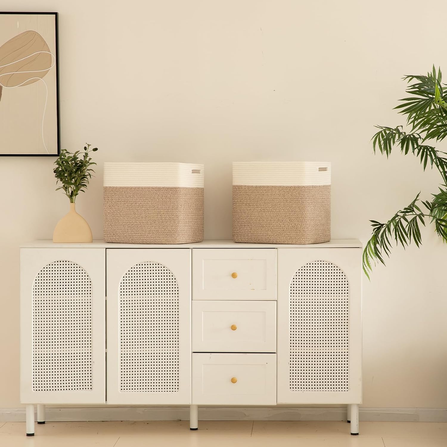- 100% Cotton Rope Storage Baskets:OIAHOMY storage bins are made of high-quality natural cotton, chemical free and safe for kids and pets. It will not scratch your furniture and floor and more firm than plastic basket