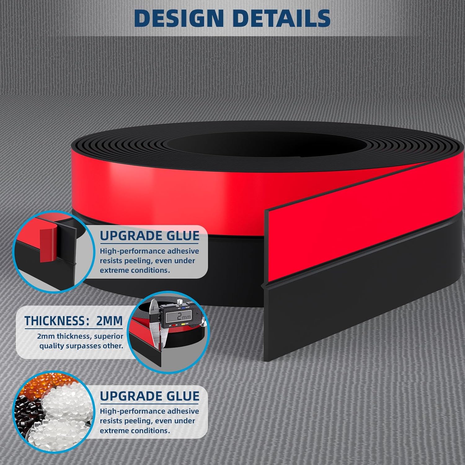 - Specifications & Custom Fit: Length: 20 ft – Cut to any size for a perfect fit. Thickness: 0.08(5/64)" – Flexible yet durable for long-lasting use. Width: 3" – Seals gaps up to 1.5" effectively.