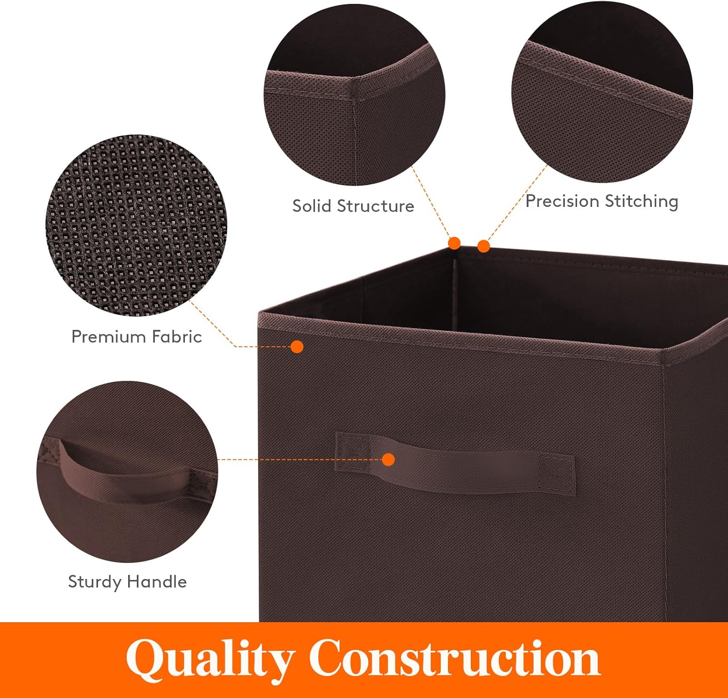 Lifewit 12 Packs Storage Cubes, 11 Inch Cube Storage Bins, Foldable Decorative Fabric Storage Baskets for Organizing Home Organizers with Handles for Shelves, Closet, Brown
