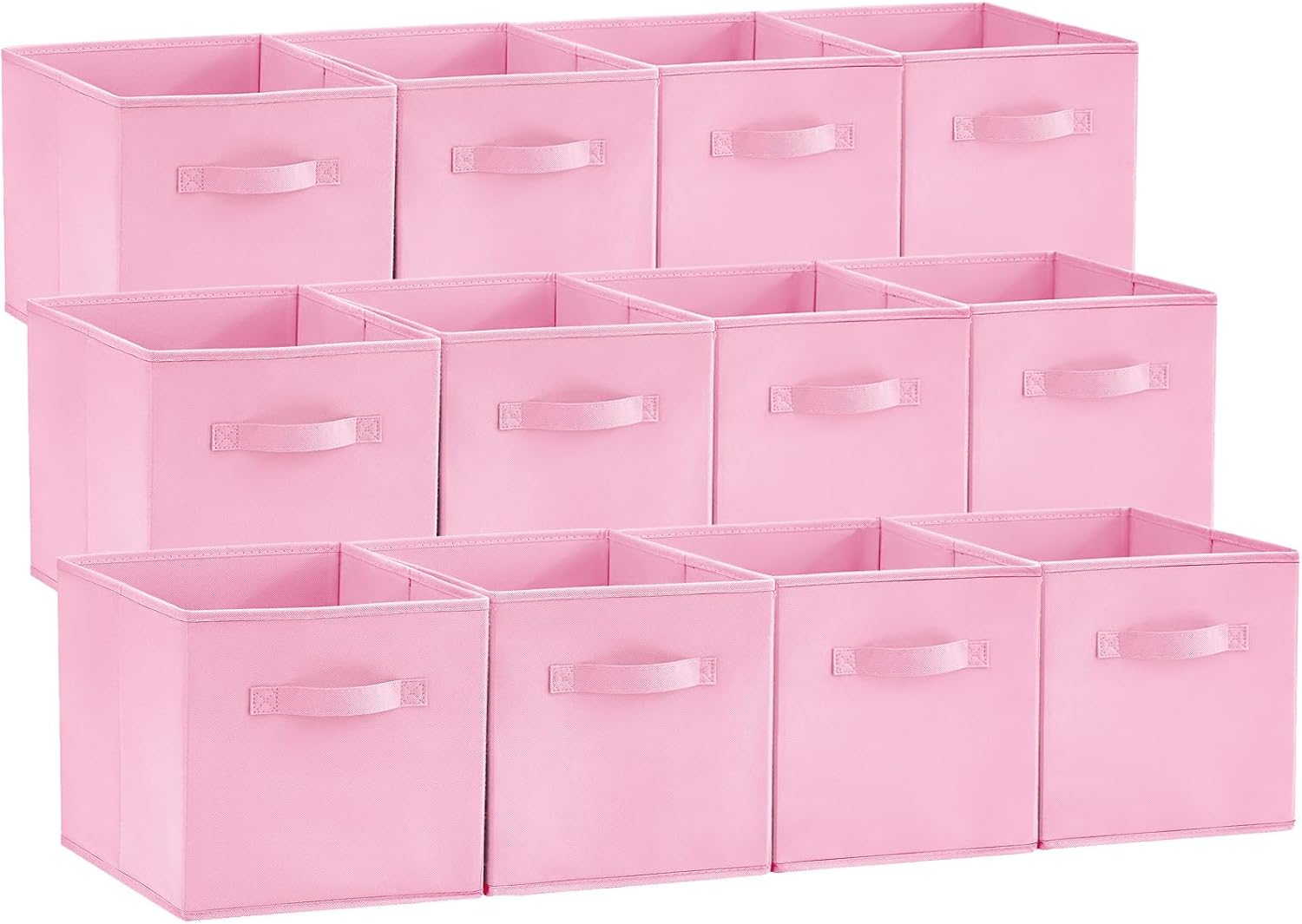 Lifewit 12 Packs Storage Cubes, 11 Inch Cube Storage Bins, Foldable Decorative Fabric Storage Baskets for Organizing Home Organizers with Handles for Shelves, Closet,Pink