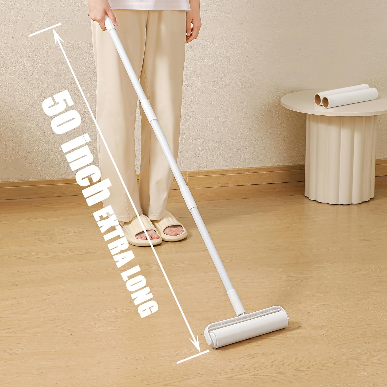 - Extra Long Handle Floor Lint Roller - No Need to Bend Over, Also Great for Couch Carpet Bed Curtain