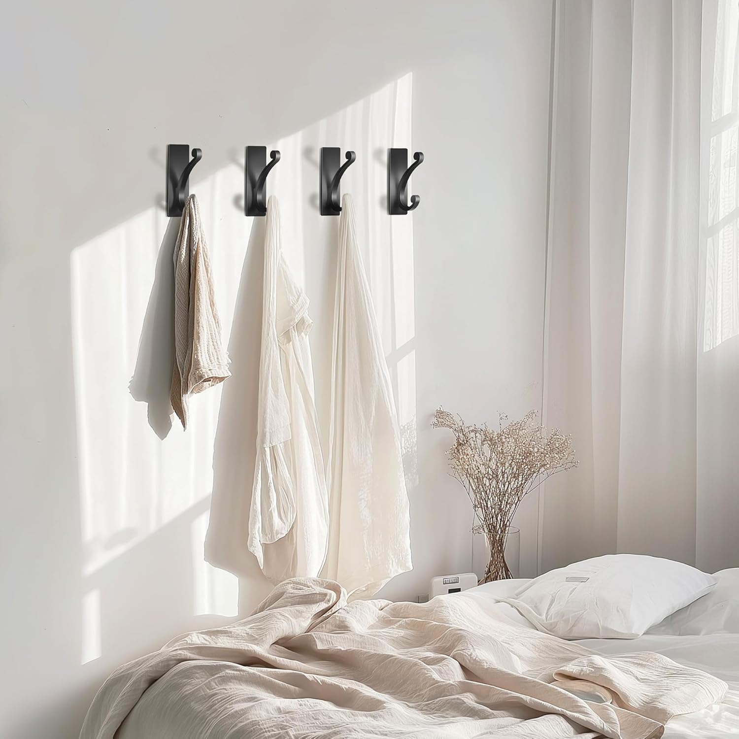 Adhesive Wall Hook for Towel/Coat - Extra Sticky 10LB Stainless, Stick on Hanger for Bath or Shower, Matt Black 4-Pack