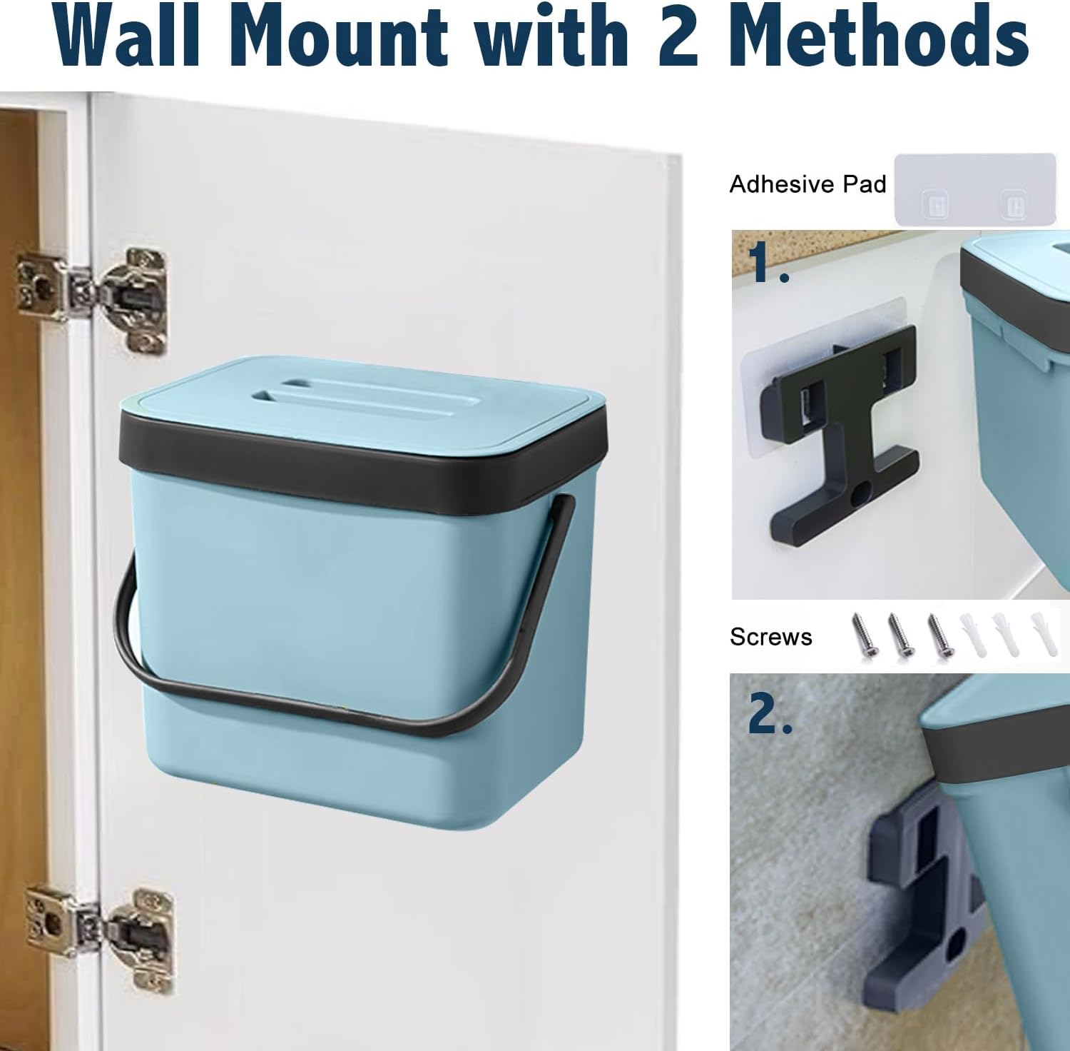 - Odor Blocking & Fruit Fly Free Compost Pail: Say goodbye to the smelly decomposing waste. Our wall mounted trash can comes with a lid. You can let the fruit scraps, vegetable peelings and other compostable materials build up for several days without worrying about attracting flies or terrible smells into your kitchen.