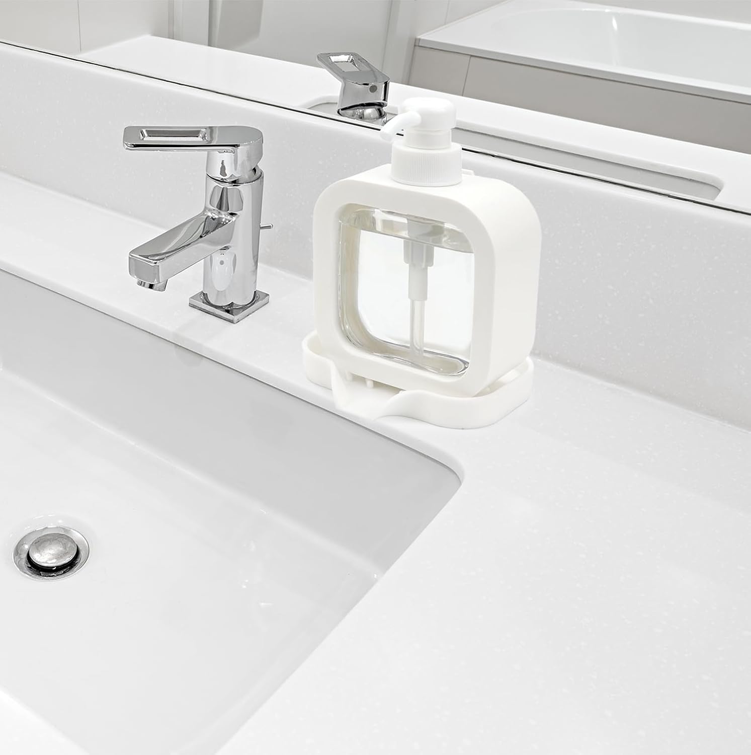 - ★Safe, Easy to Clean, Easy to Store: The soap dispenser tray is made from premium food grade silicone, so it’s safe for use in the kitchen or bathroom. The smooth surface of the soap dish makes it easy to clean, you can simply rinse or brush it with water, and it’s dishwasher safe. And its compact size makes it easy to store when not in use.
