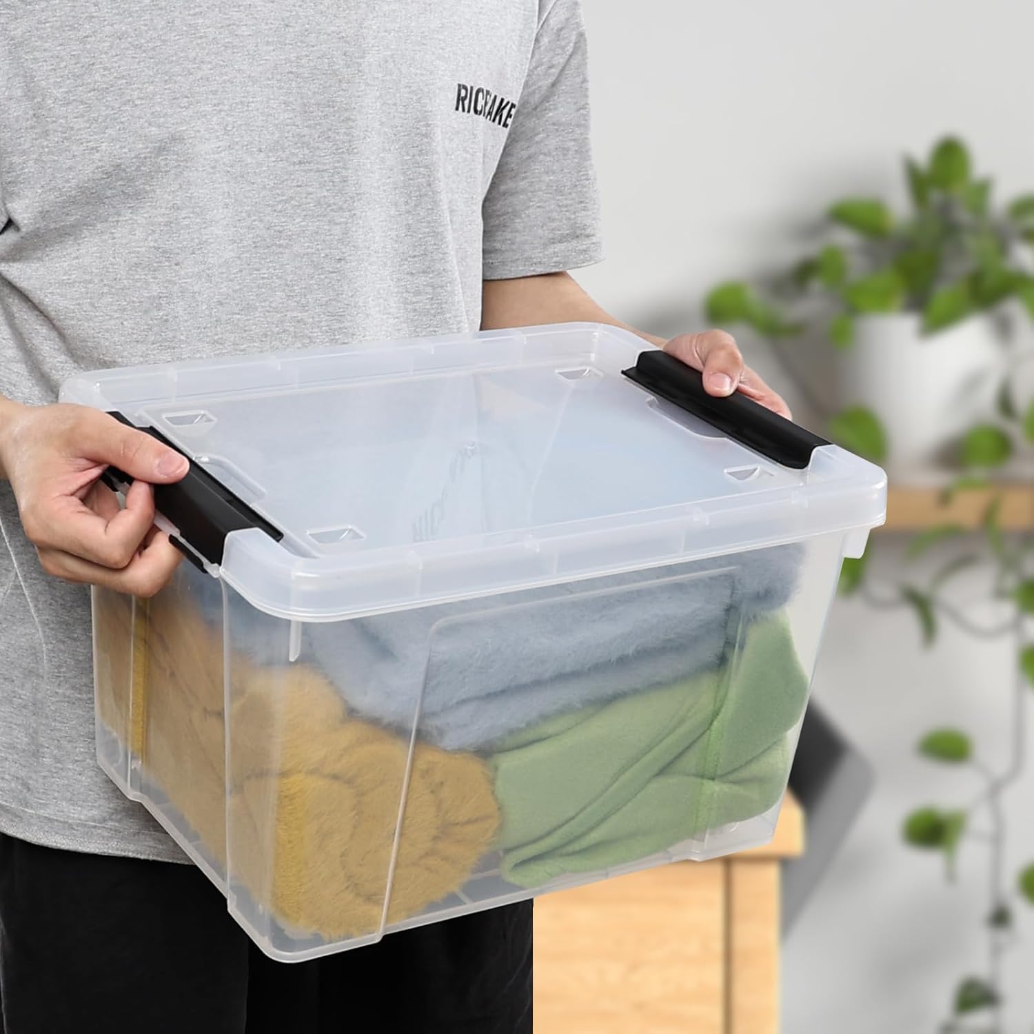 22 Qt Latching Storage Box, Stackable Bin with Latch Lid, Plastic Storage Container Tote, Clear, 4-Pack