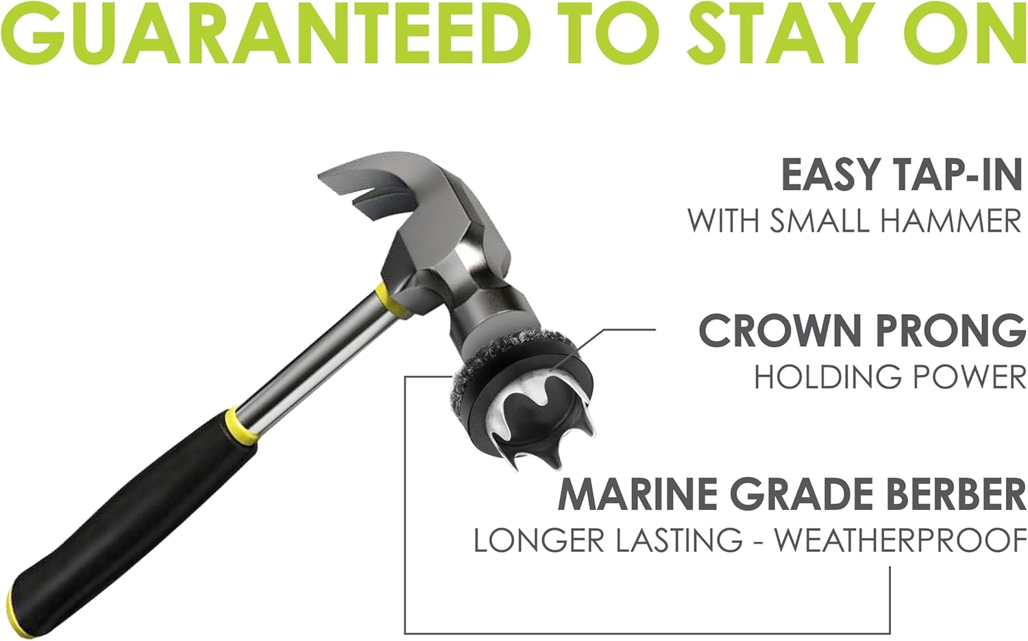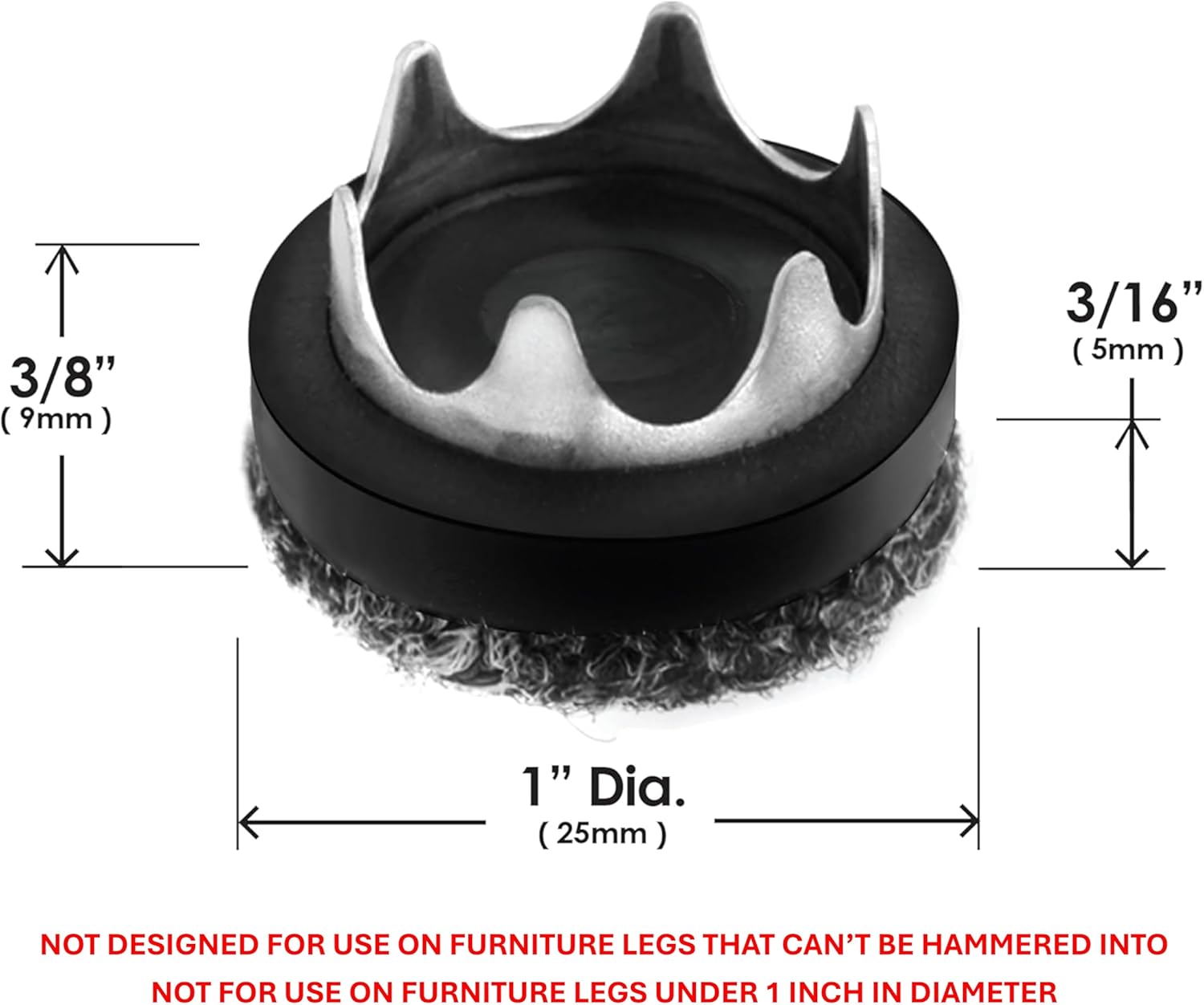 - Weatherproof & guaranteed to stay on furniture – Each tap in berber furniture glide features 6 steel prongs that hangs on and won’t come off chair feet / furniture legs that are outdoors or indoors. Not for use on furniture legs under 1" diameter at base or furniture legs that can’t be hammered into.