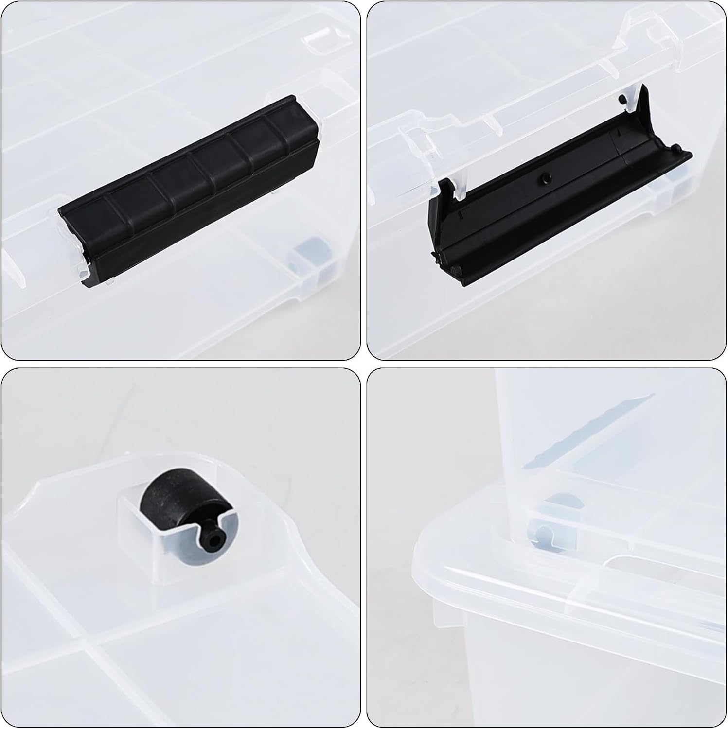 20 Quart Under Bed Plastic Storage Bins, 4-Pack Clear Under Bed Storage Box with Wheels