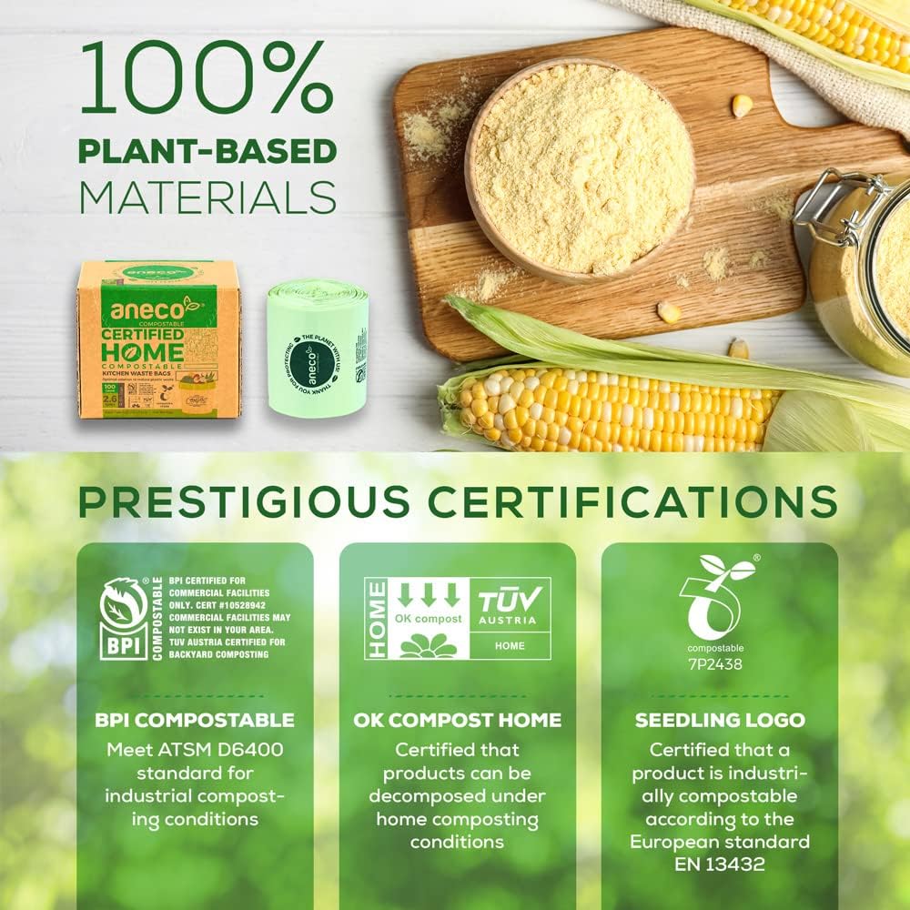 - ๐ Proud to be one of few HOME compostable trash bags in the market, ANECO Compostable bag can decompose completely not only in industrial facilities but also in home system. Use these bags to collect kitchen scraps and put them straight into the compost dumpster, or bury and turn them into valuable compost for your garden