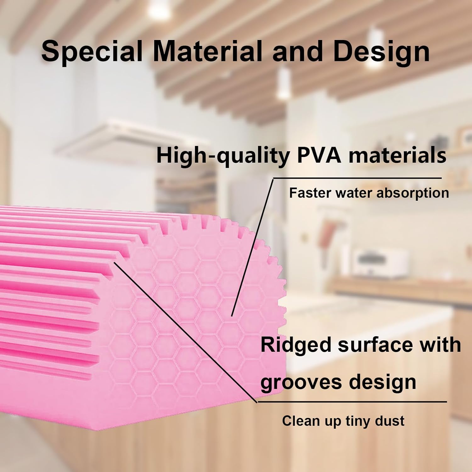 - 【Unique Design】: Made of PVA material sponge,it can absorbs water faster. Featuring a ridged surface design with grooves and a dual textured design capture dust easier. Professional design helps in cleaning