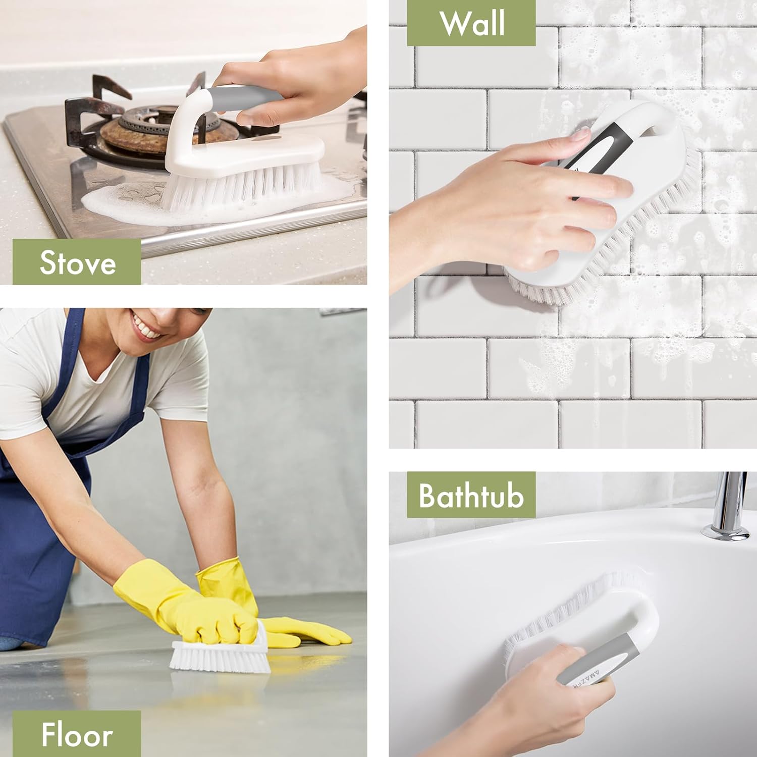 - Upgraded colors : Classic black and grey are more popular, and the handle of the scrub brush is more anti-dirt. Stiff white bristles firmly attached to scrubbing brush head, so Amazer brush cleaner will stand up to the test of tim