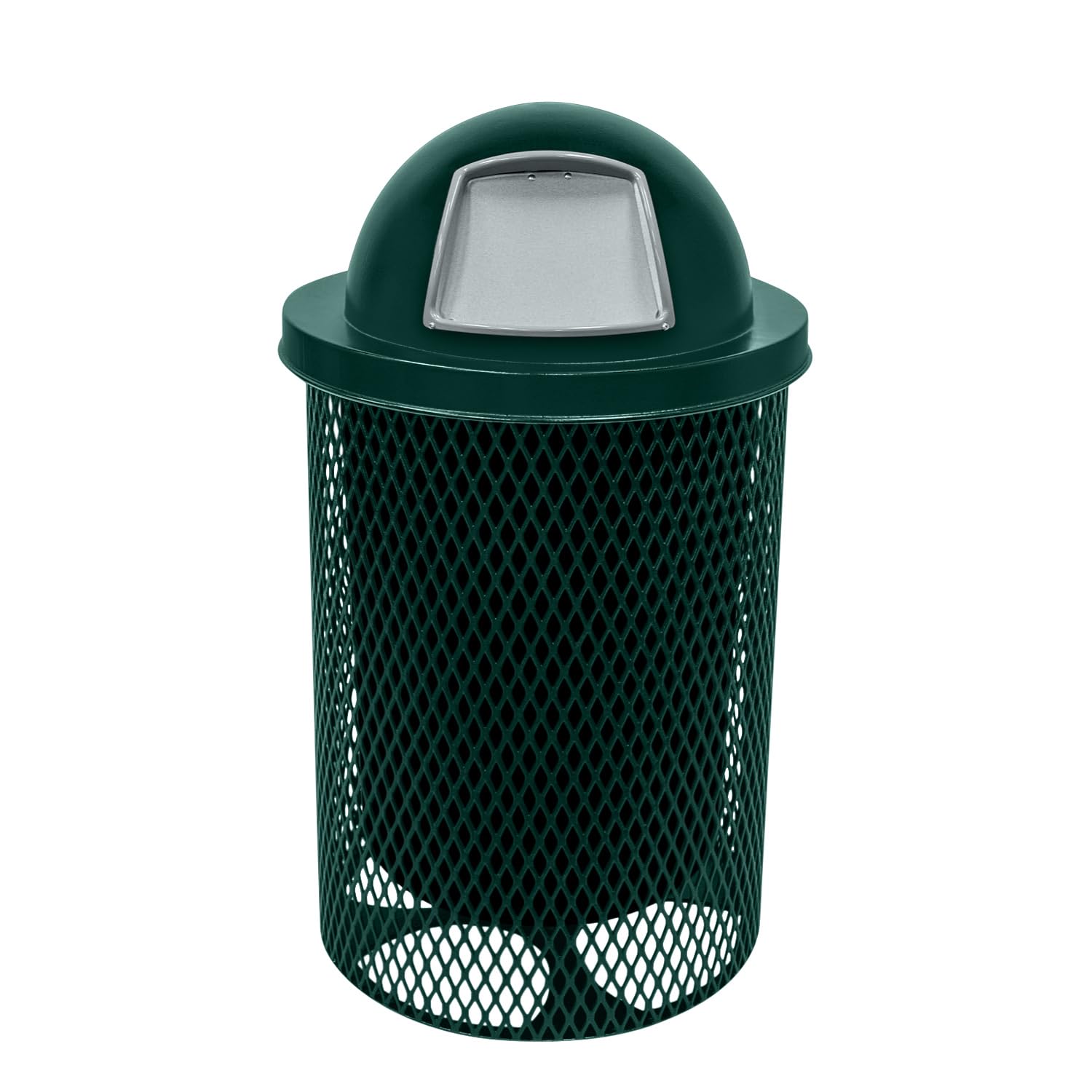 COATEDOUTDOORFURNITURE RDT-DGRN Heavy Duty 32 Gallon Round Trash Receptacle, Liner Included, Dark Green with Black Dome, Made in America