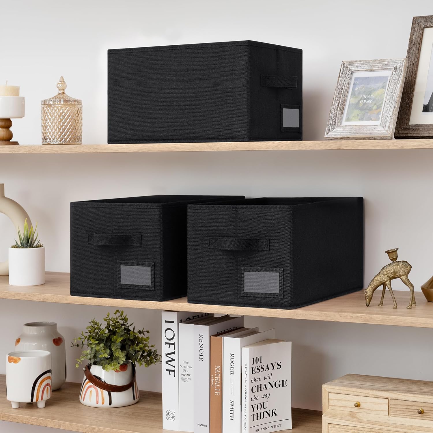 GRANNY SAYS Storage Bins, Storage Baskets for Shelves, Fabric Storage Bins for Clothes, Closet Organization Bin, Collapsible Storage Bin with Handles, Decorative Storage Box, Black, Large, 3-Pack