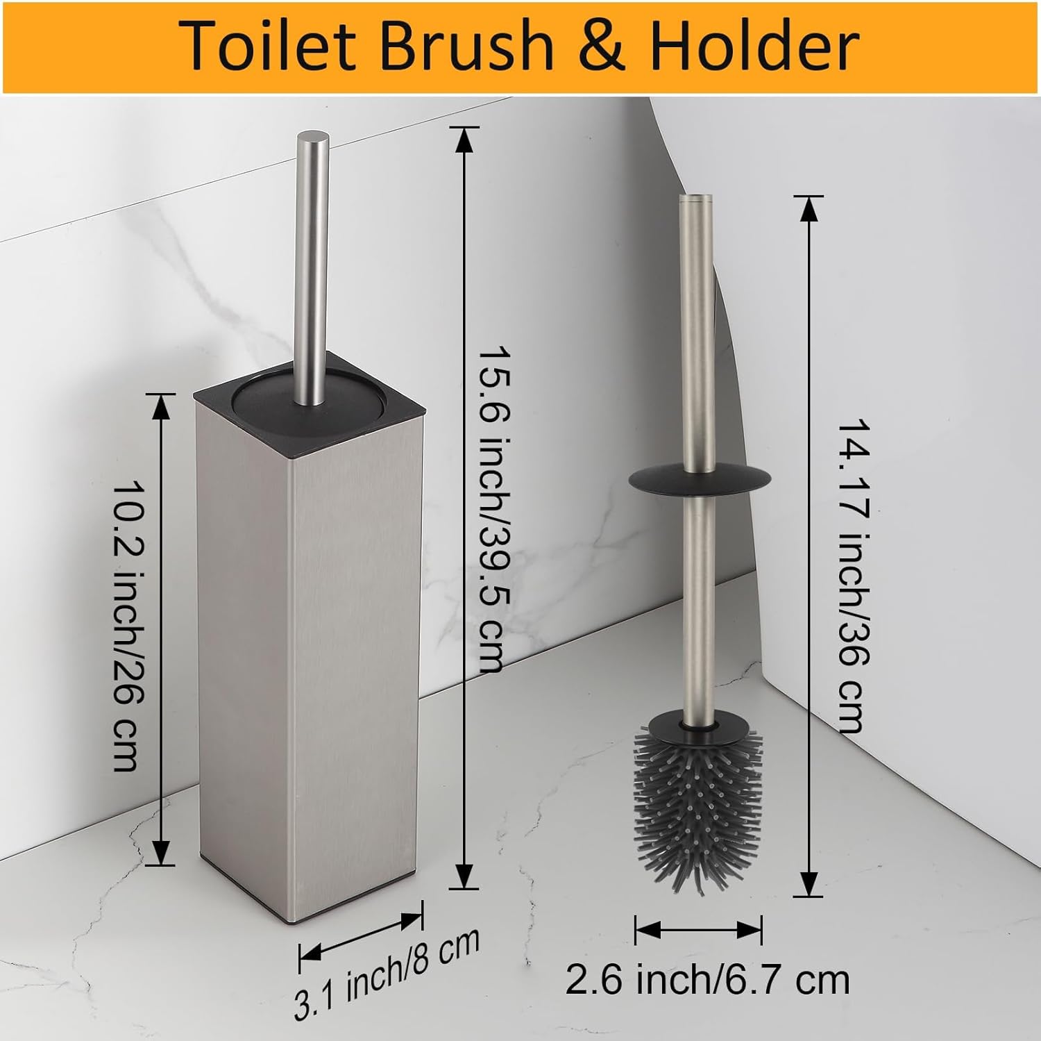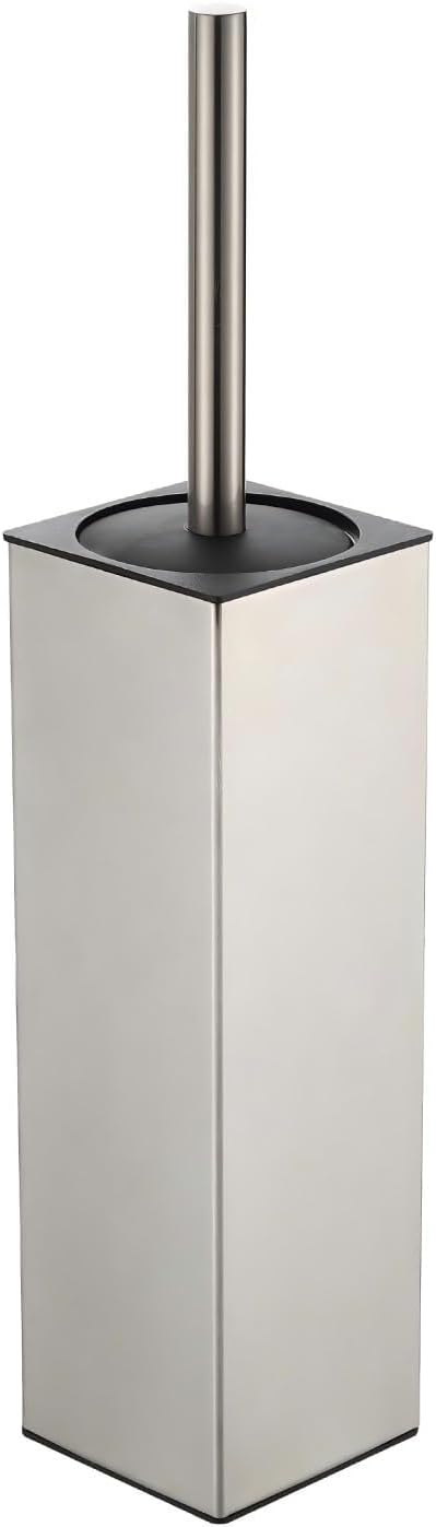 BGL Toilet Brush and Holder Set Brushed Nickel Aluminium Freestanding Toilet Bowl Cleaner Brush and Holder for Bathroom Storage and Organization, Square Design Sturdy and Space Saving