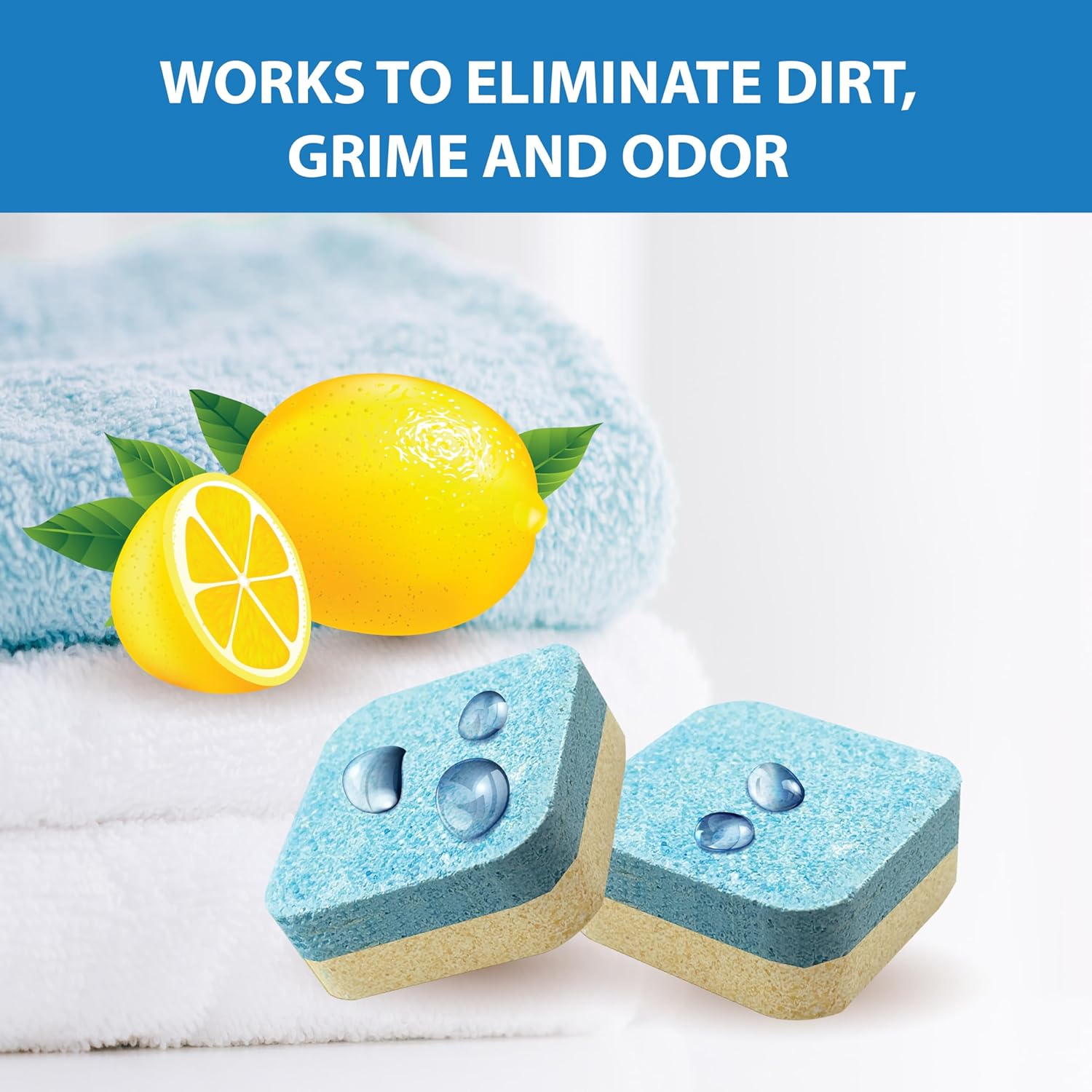 - Easy to Use: Drop a tablet directly into the drum. Run a normal cycle in HOT water setting to effectively dissolve the tablet. Works great on excessive buildup caused by detergent or hard water. Perfect to use in the washer basin after running soiled dishcloths, bathroom rugs, kitchen rags, or exercise clothing.