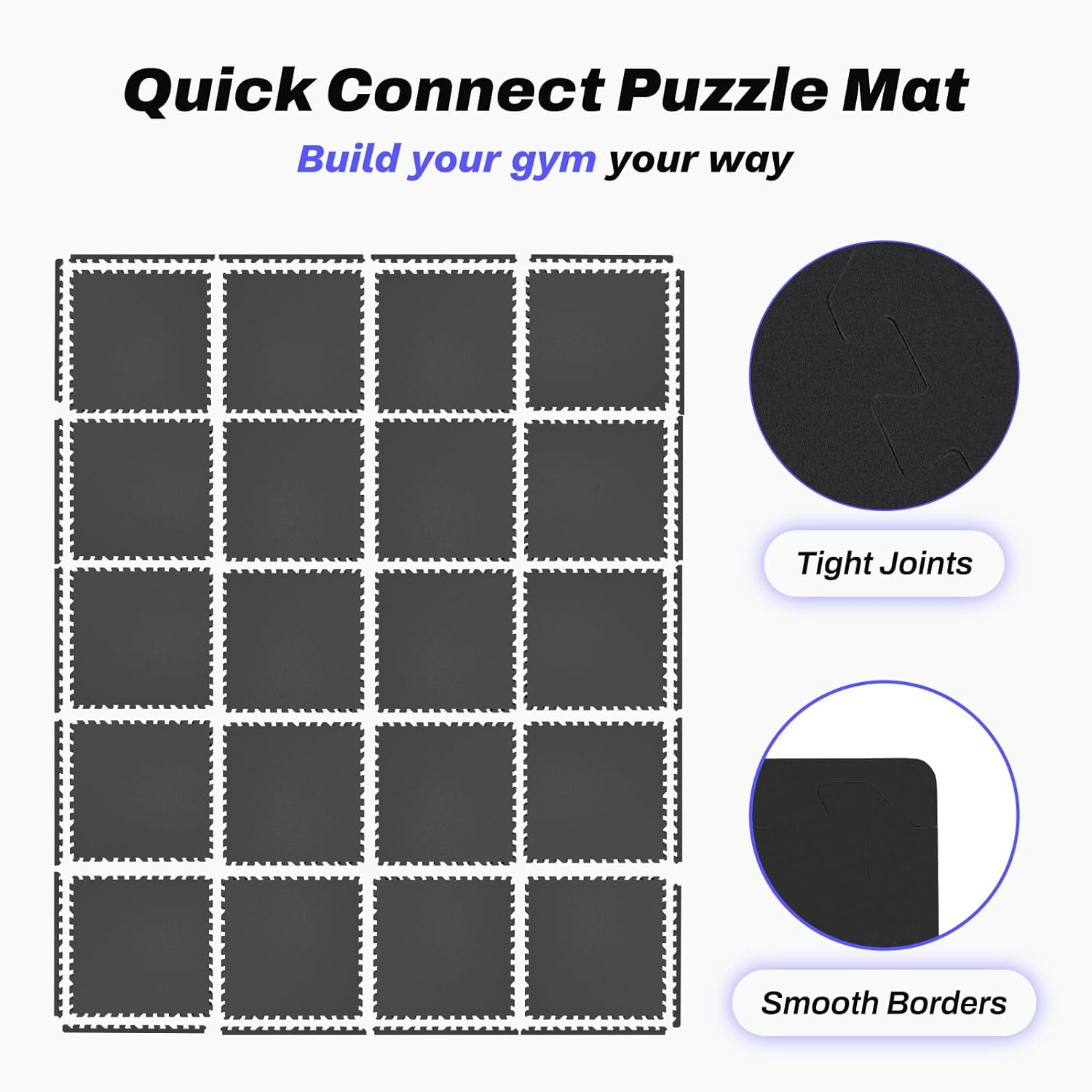 - [Easy to Assemble and Detach]: 24 tiles (24" x 24" x 0.56" each), covers 96 sq ft (8 × 12 ft). Upgraded larger interlocking locks provide a secure fit, preventing any separation during use, ensuring you can work out without concerns of shifting. Simple assembly and detachment make it effortless to set up your home gym.