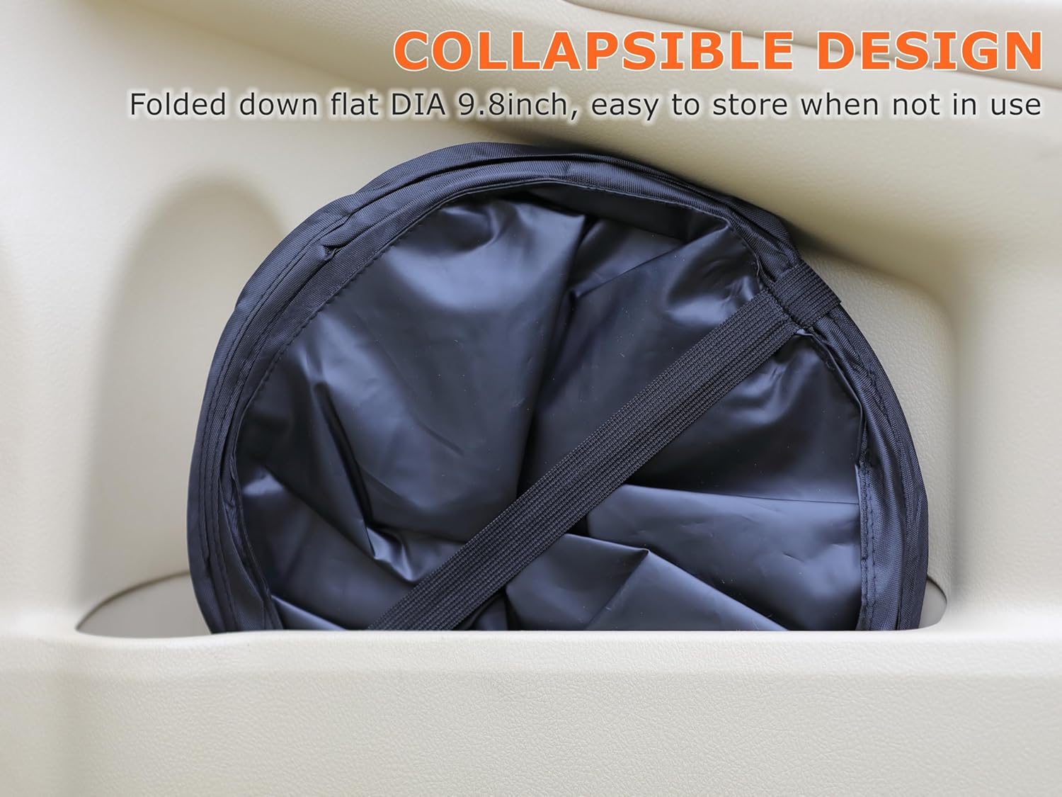 - KEEP YOUR CAR CLEAN AND TIDY – It is supposed to place a plastic bag inside the car trash bin before you use it. With this large capacity car trash can, all kinds of car garbage can be thrown in, no more loose items rolling around on the floor or taking up seat space, portable for travelling and camping.