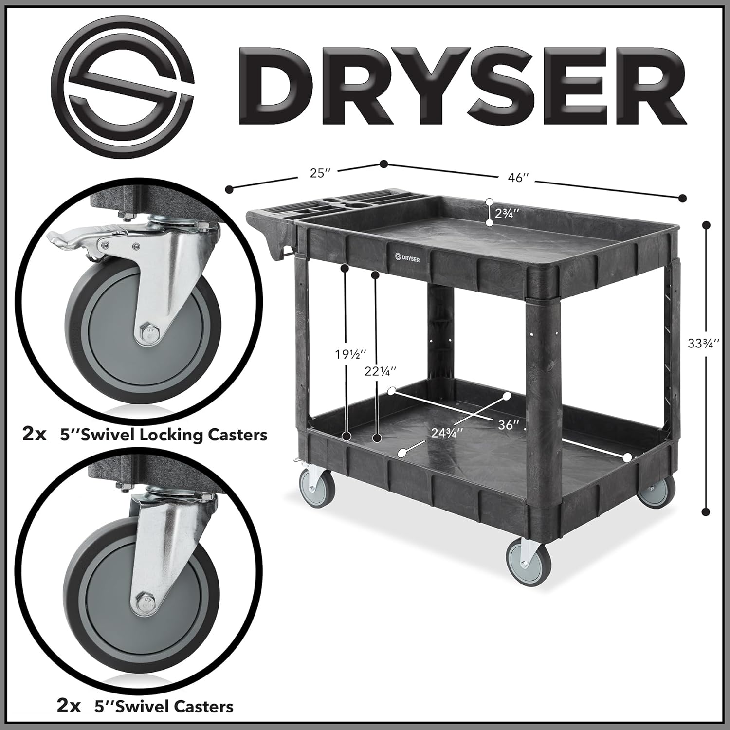 Dryser Utility Cart with Wheels, 46" x 25" Heavy Duty 550 lb. Capacity with Shelves - 2 Tier Rolling Cart with Four 5" Swivel Casters for Warehouse, Garage, Cleaning