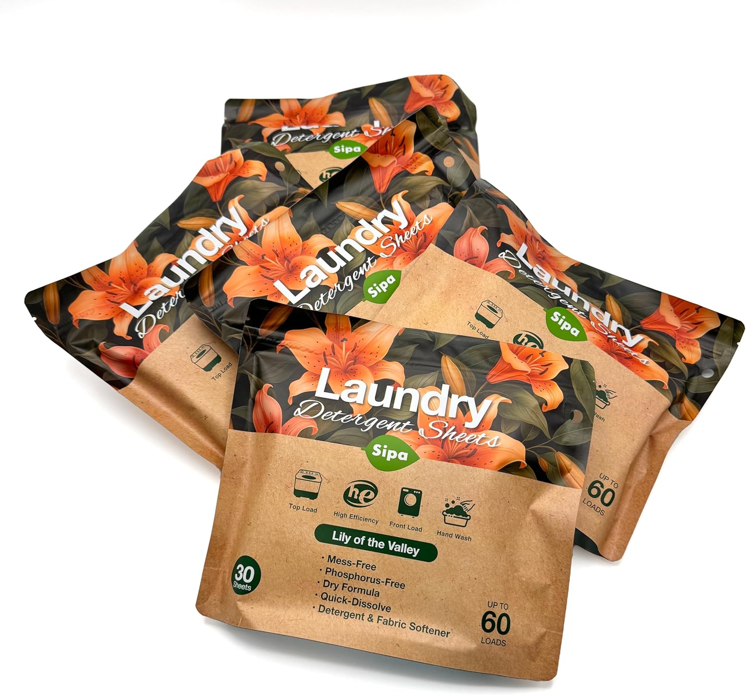 - NO MESS, NO FUSS: Traditional detergents can be cumbersome and messy. SIPA Laundry Sheets provide a simple, no-mess solution: 1 sheet equals 1 load. No measuring, no spills.