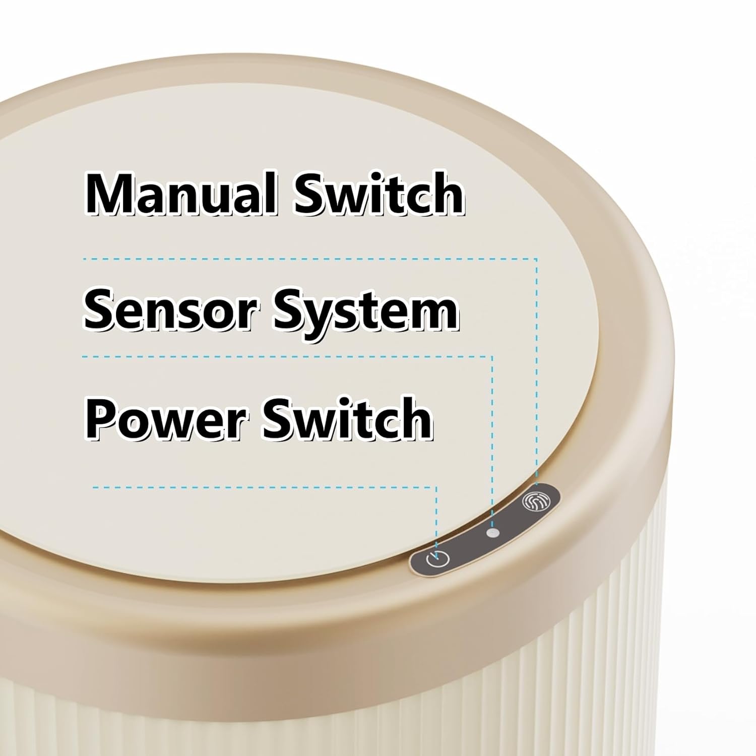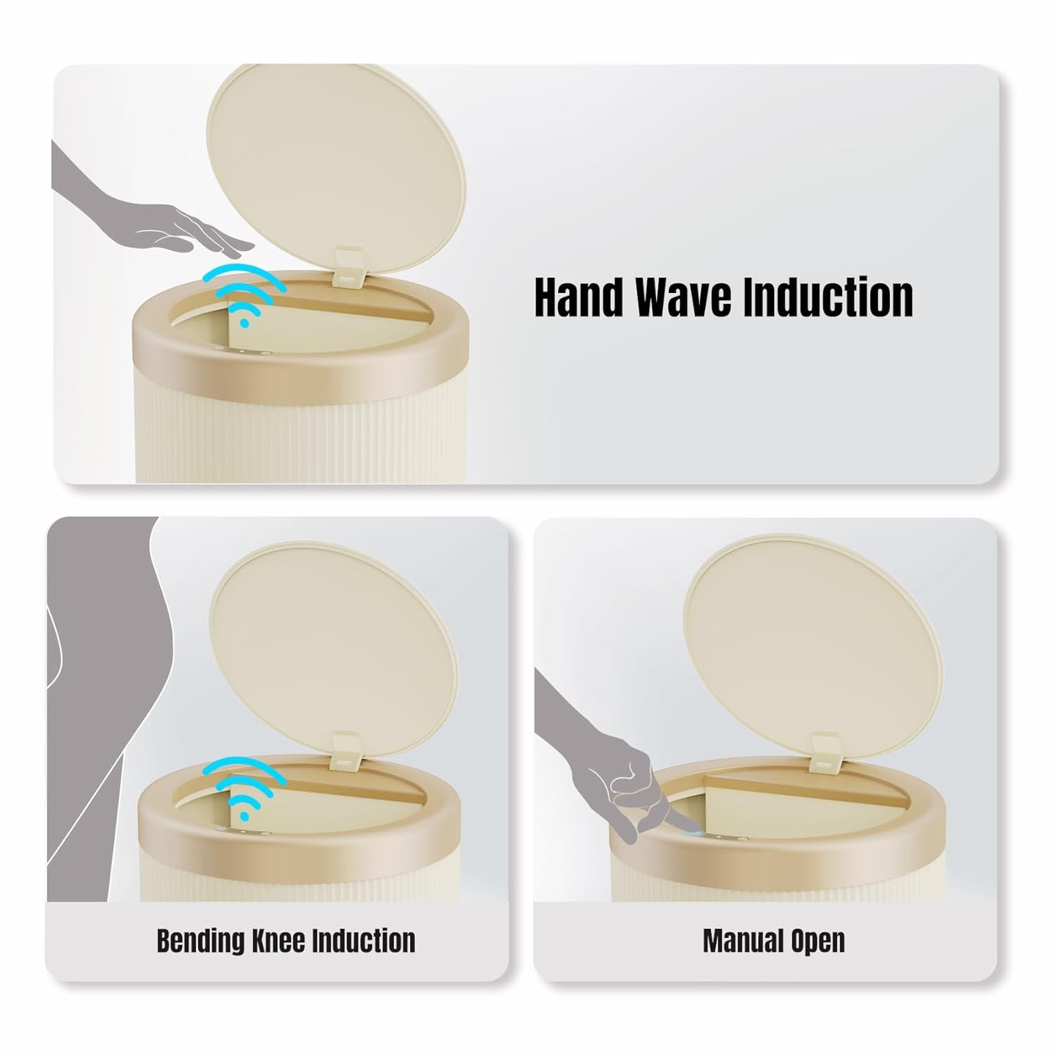 URALFA 3.7 Gallon Motion Sensor Bathroom Trash Can with Lid,Automatic Waterproof Touchless Garbage Can, Smart Plastic Trash Bins Suitable for Toilet, Office, Bedroom, Kitchen (Cream White)