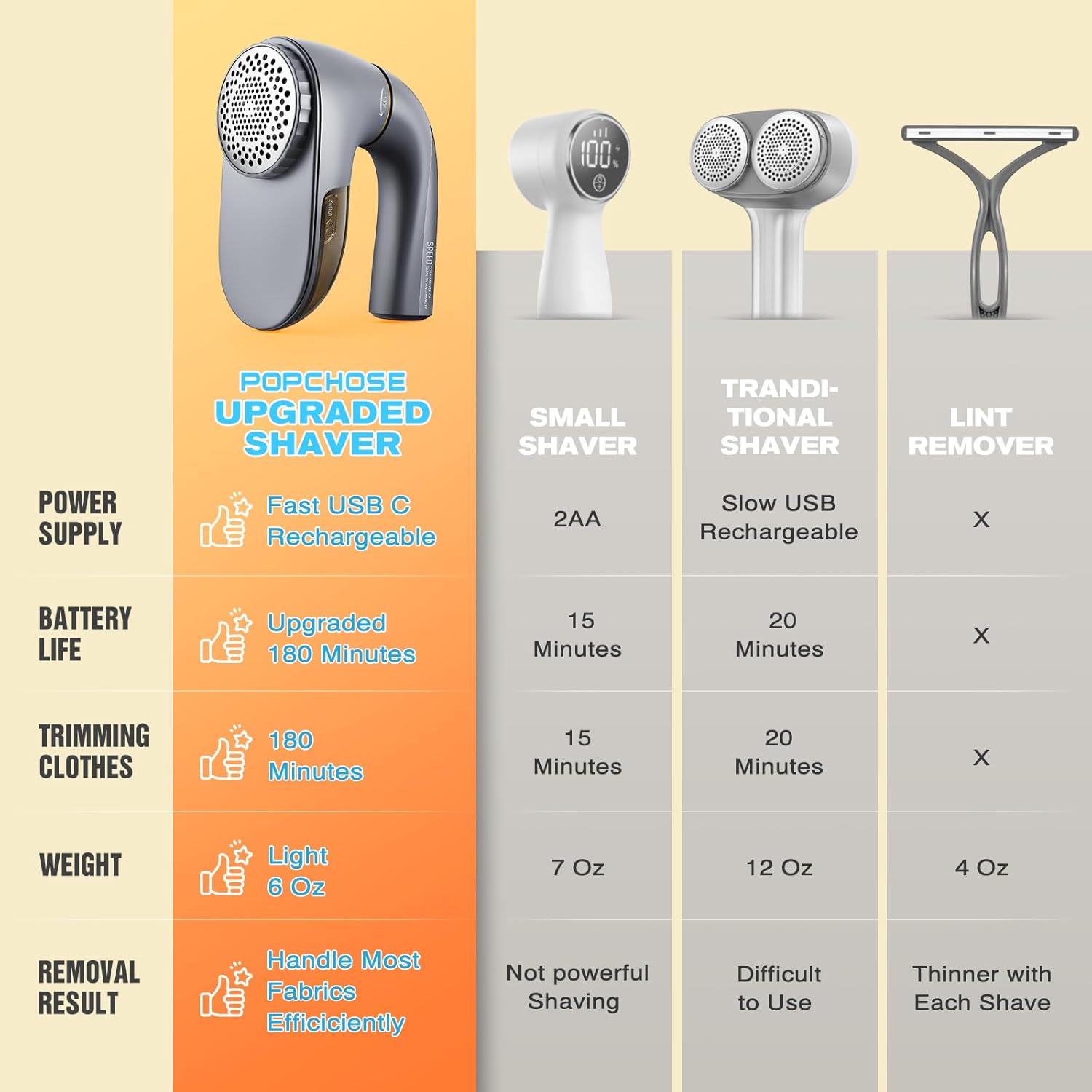 - Fast USB-C Charging: The lint shaver for clothes charges from Power Banks, Laptops, or Cars. The sweater shaver works wirelessly for a comfortable lint removal experience. The lint remover also can be operating while charging.