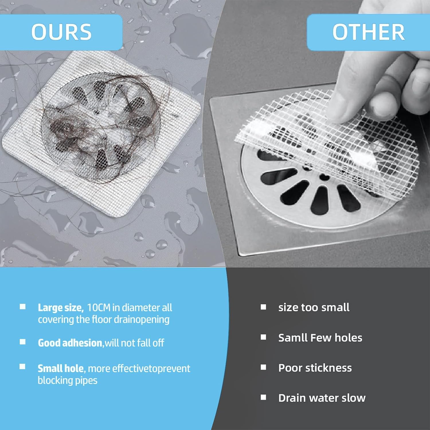 - Packaging / Note: Each package includes 30 drain mesh cover. You can trim the sticker grid to fit your needs. Before applying, clean and dry the surface to ensure long-lasting adhesion.