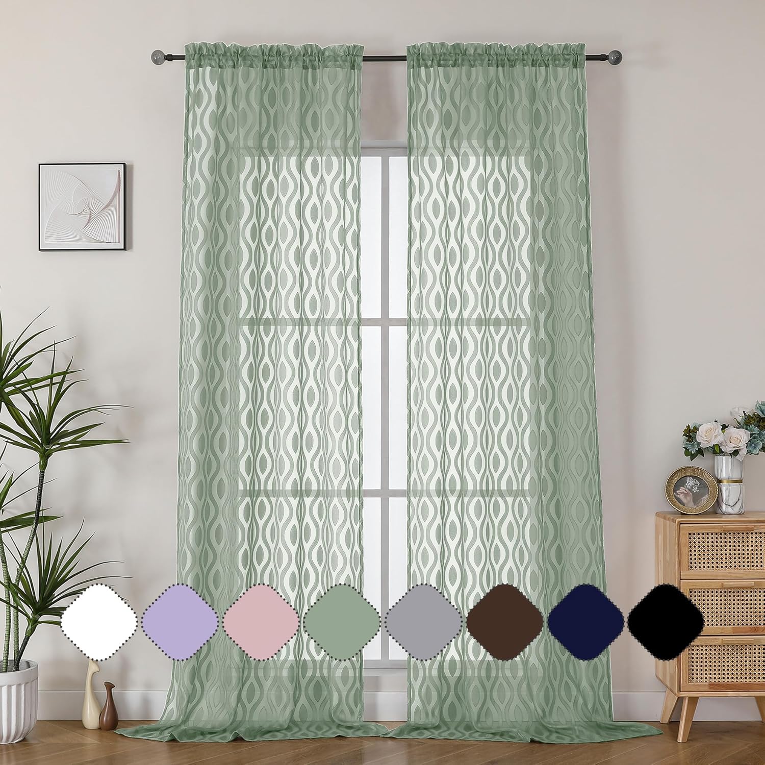 - Clip Wavy Line Design: The Clip Wavy Line sage green farmhouse bedroom curtains Design features intricate, dancing waves that add depth and texture to sheer fabric. Its captivating pattern creates a dynamic visual flow, enhancing any room's decor. Ideal for bedrooms, living rooms, kid's rooms, and dining areas, this design brings sophistication and charm to any space