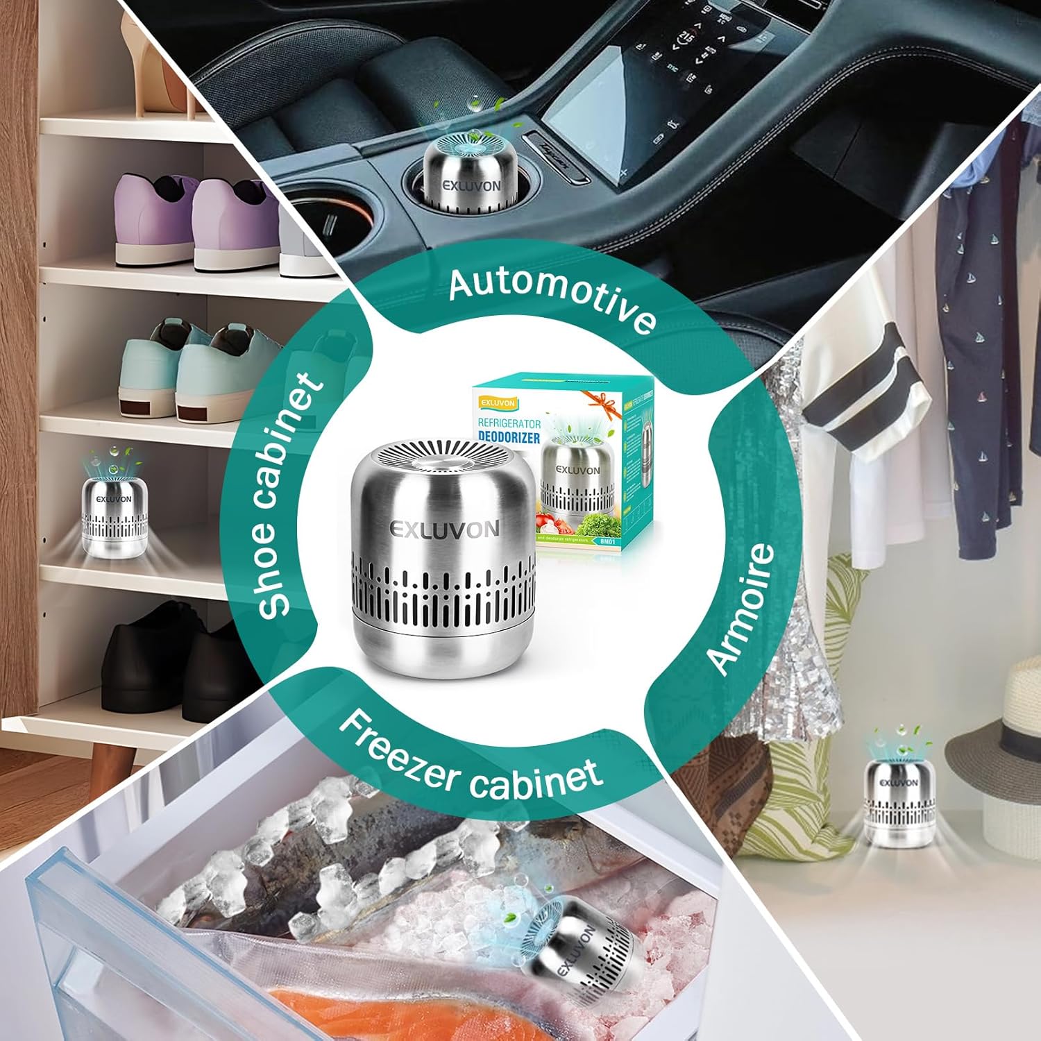 - Eco-Friendly Odor Eliminator: The Exluvon refrigerator odor eliminator is made from food grade SUS 304 stainless steel, ensuring durability and high quality. The innovative design of this fridge deodorizer enhances air circulation, stopping odor build-up and keeping your food safe and fresh. You won't have to worry about spills or leaks anymore!