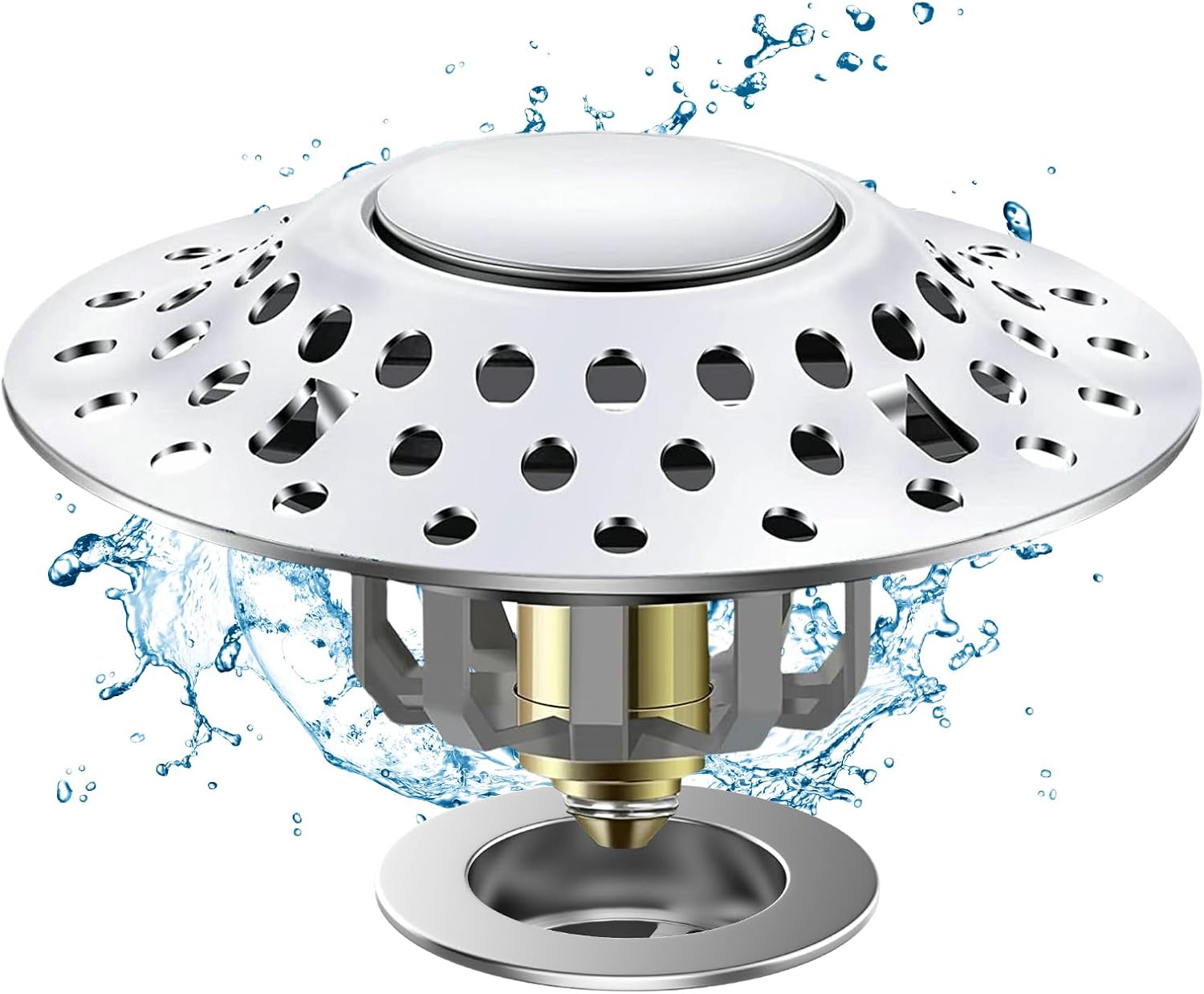 - 【Upgraded 2 in 1 Tub Stopper】Our new version tub stopper bathtub drain can work as both drain stopper and drain hair catcher. Simply press down the button to stop the water, press again to drain the water and catch hair. It is more convenient and effective to use than traditional drain plugs