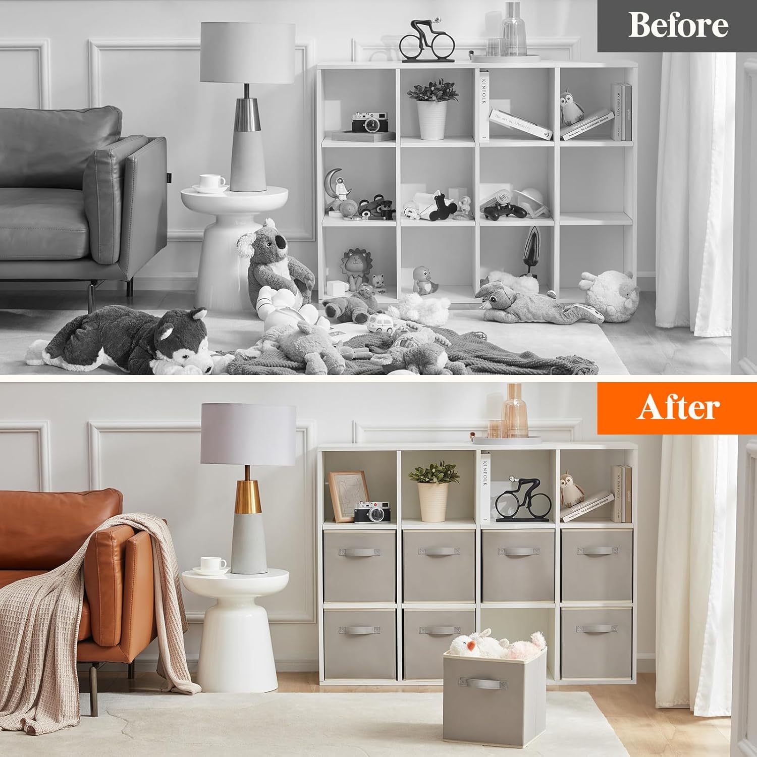 Lifewit 13 Inch Cube Storage Bins, 8 Packs Storage Cubes Foldable Decorative Fabric Storage Baskets for Organizing Home Organizers with Handles for Shelves, Closet, Light Gray