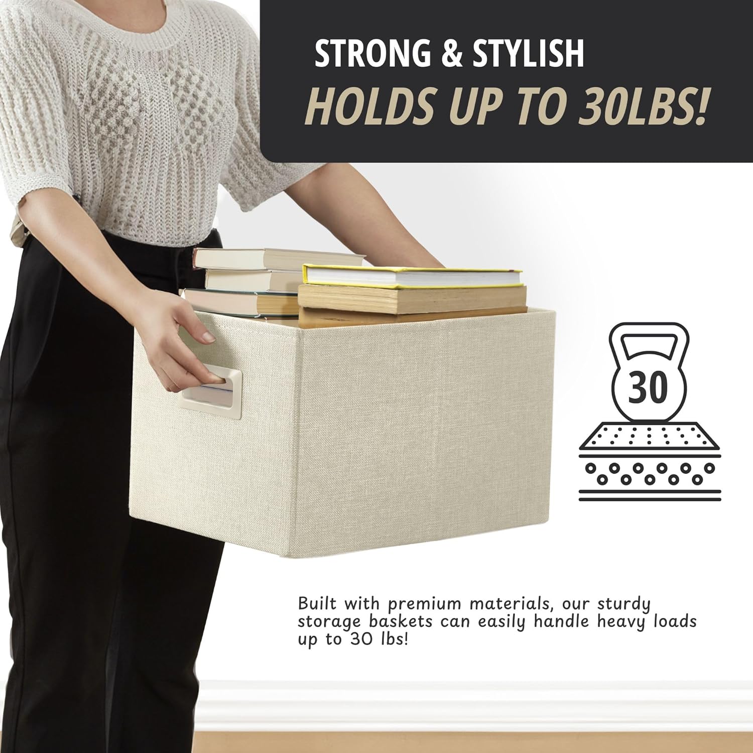 - Elegant Design: Crafted with a beautiful faux linen exterior and sleek cut-out handles for a clean, modern look. Stylish and practical large storage baskets for any home décor.