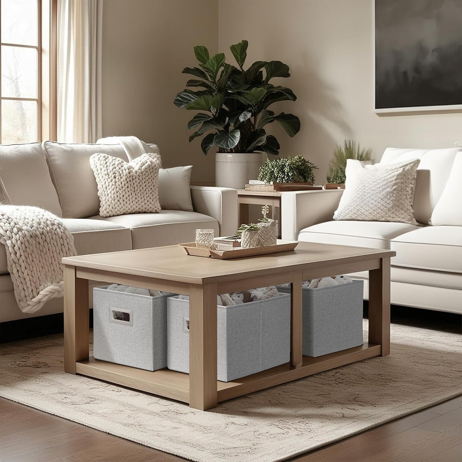 - Elegant Design: Crafted with a beautiful faux linen exterior and sleek cut-out handles for a clean, modern look. Stylish and practical large storage baskets for any home décor.