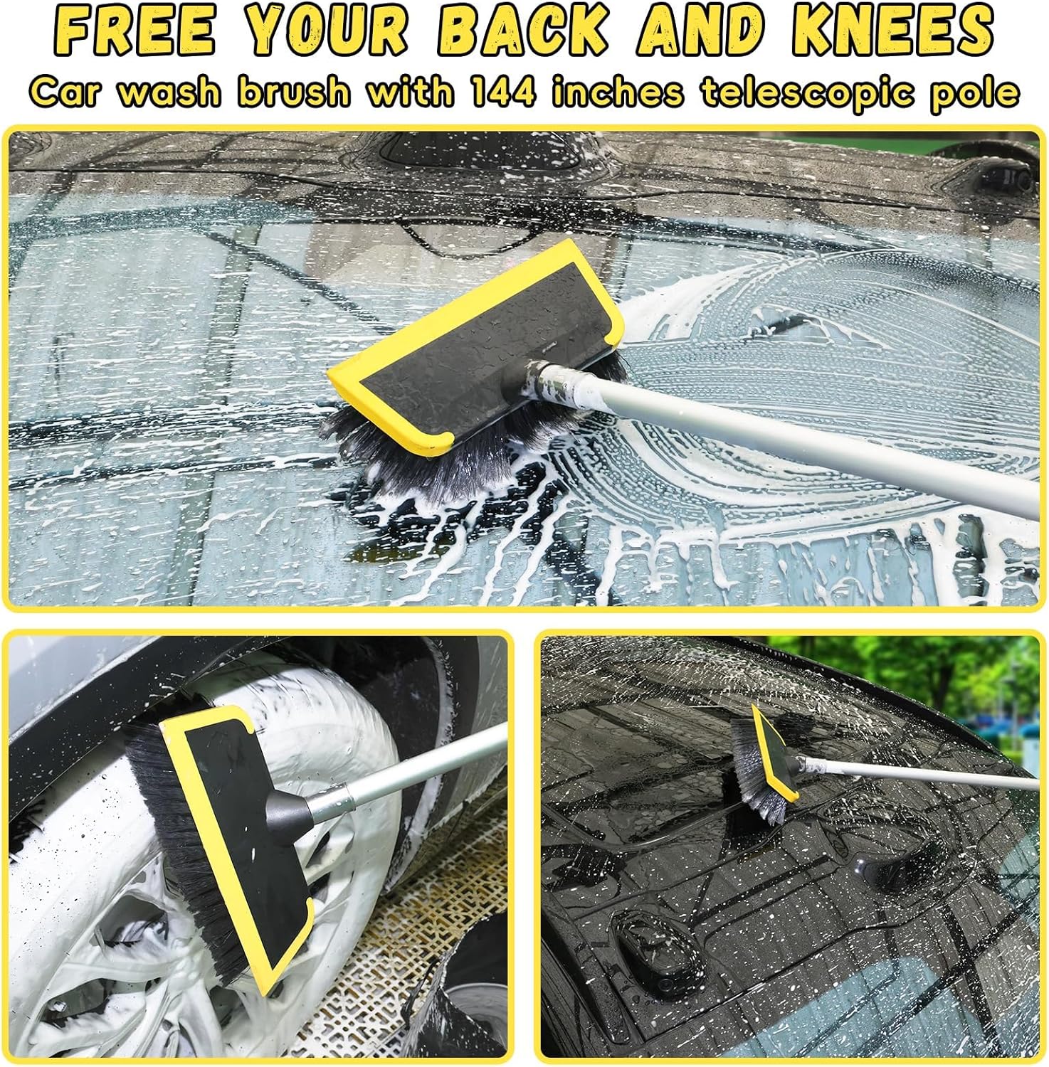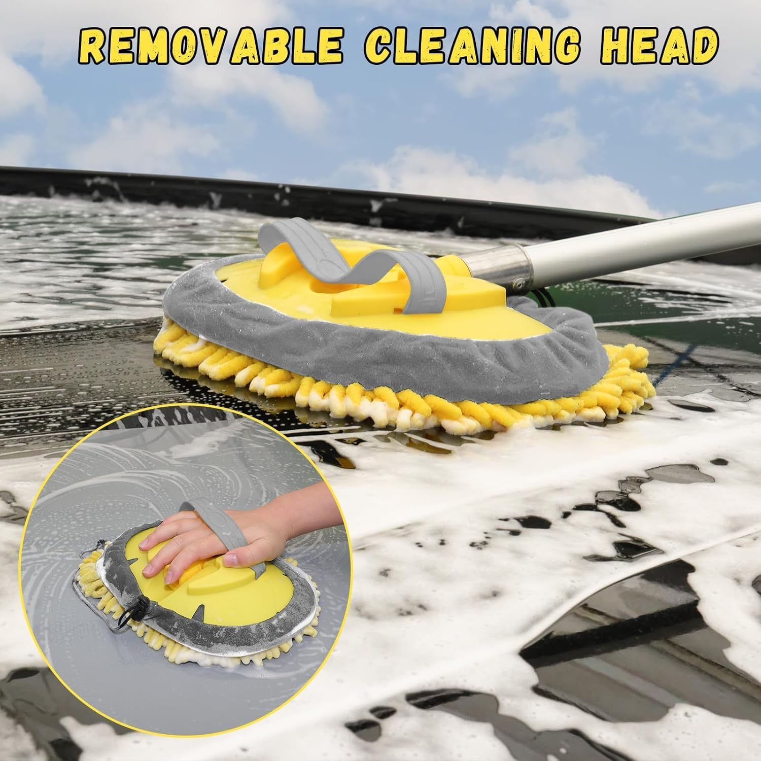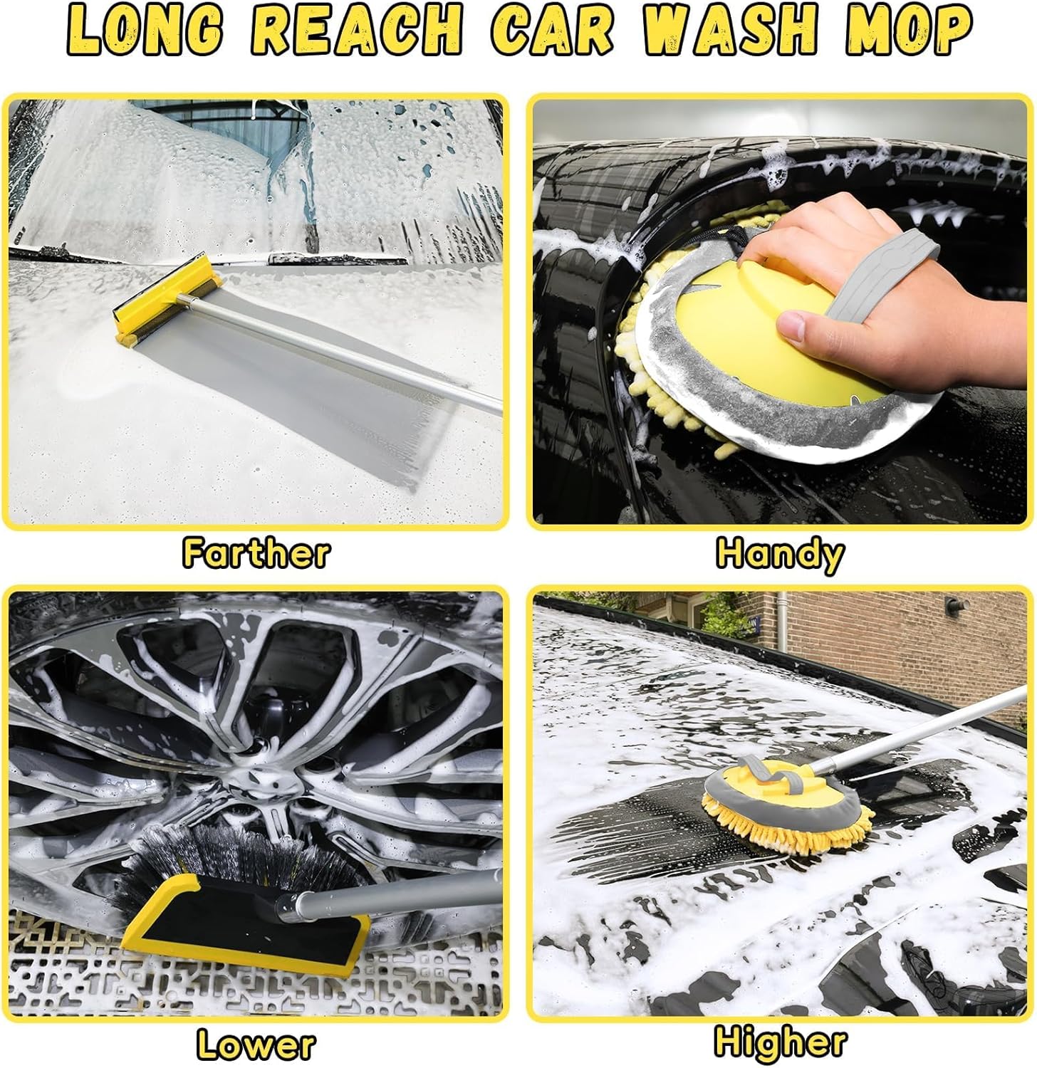 - Universal Vehicle Care Solution – Tailored for versatility, this comprehensive car wash kit efficiently caters to the cleaning needs of your RV, car, pickup truck, and more. Engineered to tackle tricky angles and inaccessible spots with ease, the kit comprises a streak-eliminating windshield brush, a robust car wash brush, and a gentle microfiber mop, ensuring every inch of your vehicle receives meticulous attention without the risk of scratches
