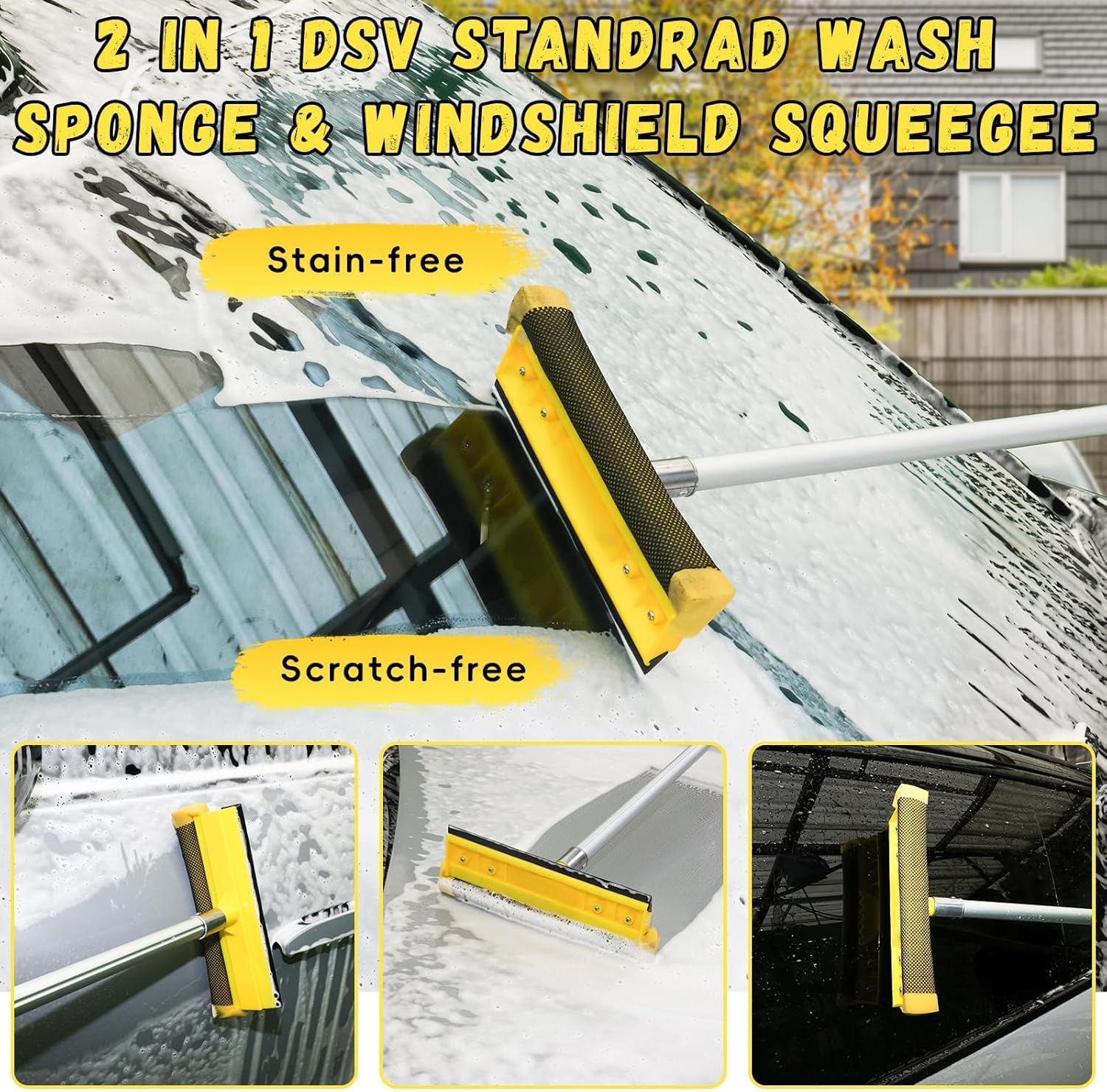 - Versatile Brushes and Sponges: Whether you need to clean your RV, your car or pickup truck, this multi-use car wash kit is designed to easily. clean all kinds of vehicles, even in odd angles and hard-to-reach places. The kit includes a variety of brushes and sponges designed for different cleaning tasks, ensuring every part of your car is thoroughly cleaned. It also features a streak-free windshield washer brush, a car wash brush, and a microfiber car washing mop to clean any surface without a scratch.