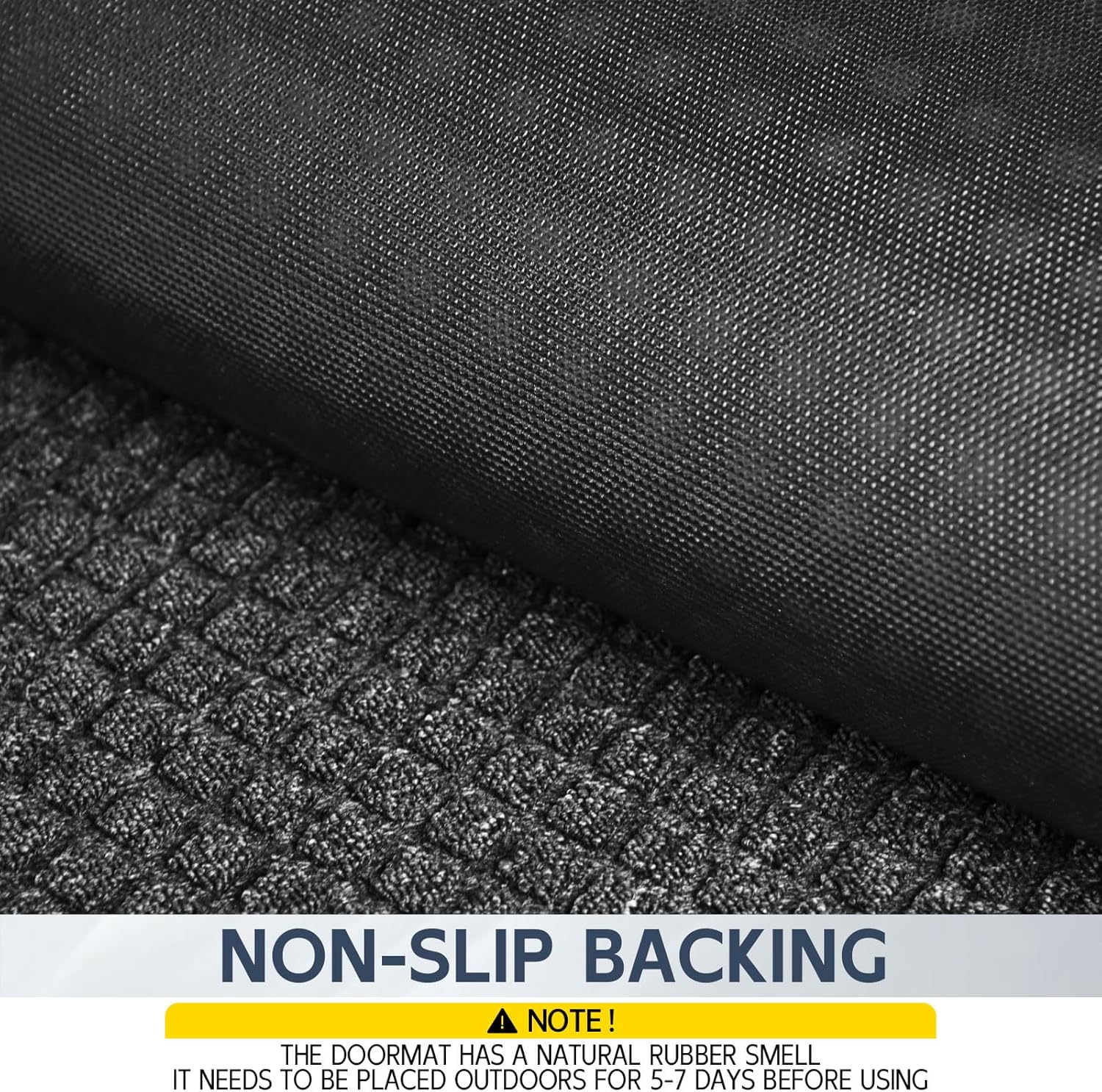 - NON-SLIP BOTTOM: The bottom of the outdoor floor mat are made of natural rubber, waterproof, and wear-resistant, which keeps the mat fixed in place, Quality for outdoor use in all weather. Both safe and comfortable (Fresh rubber smell on the bottom, please leave it in a ventilated place for about 5-7 days)