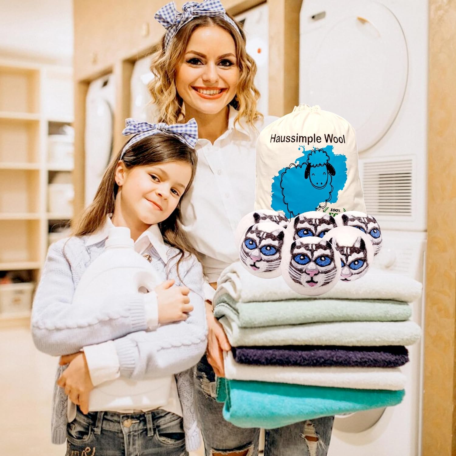Wool Dryer Balls Organic Felt 6 Pack Laundry Fabric Softener, Extra Large Reusable Handmade Natural Sheep Wool Lint Wrinkle Free Anti Static Baby Safe (Gray Cat)