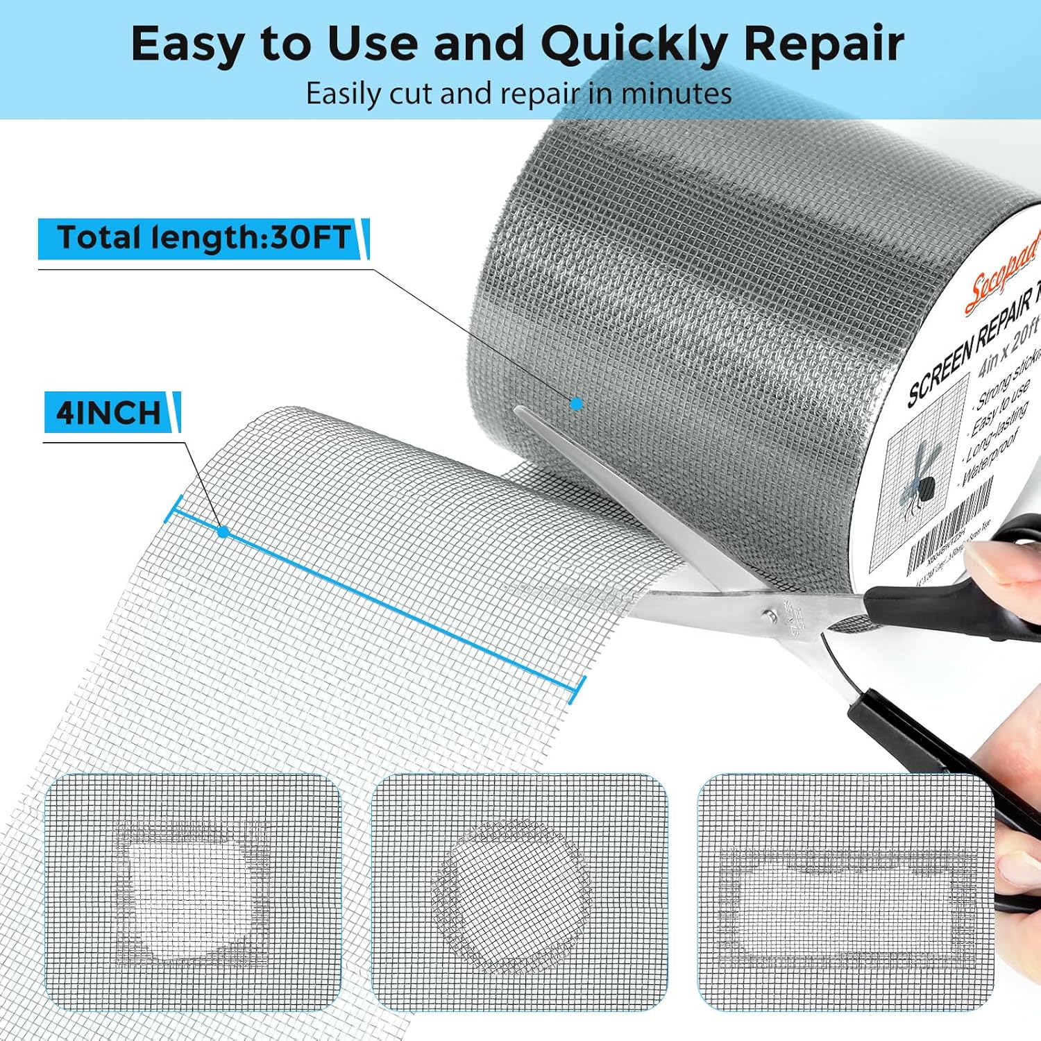 - Easy and Fast: Cut a suitable size or shape of the screen repair tape, then cover the tear or hole you want to repair. No tools needed and only seconds you're done! Fast and easy way to repair screens temporarily or permanent